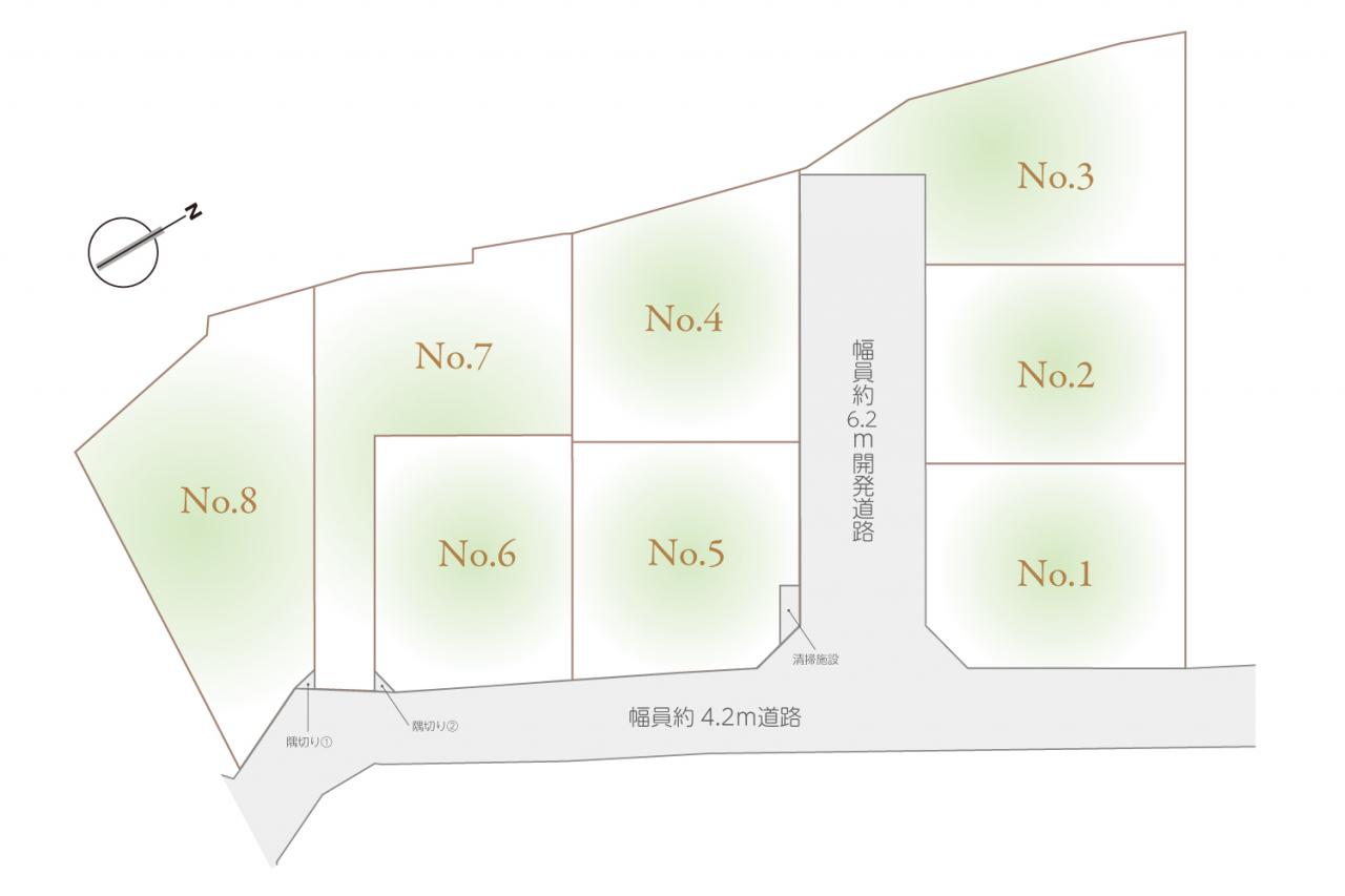 全8区画│都市ガス|ZEH水準対応|前面道路幅員4.2m~6.2m
