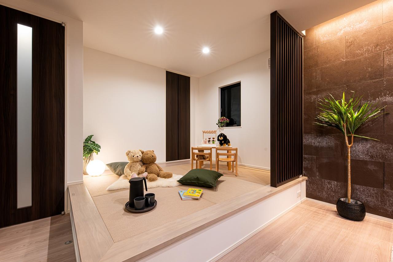 リビングの一角に、リラックスできる特別な空間を。お子様の遊び場としても便利な、使い勝手の良いスペースです(弊社施工例)
