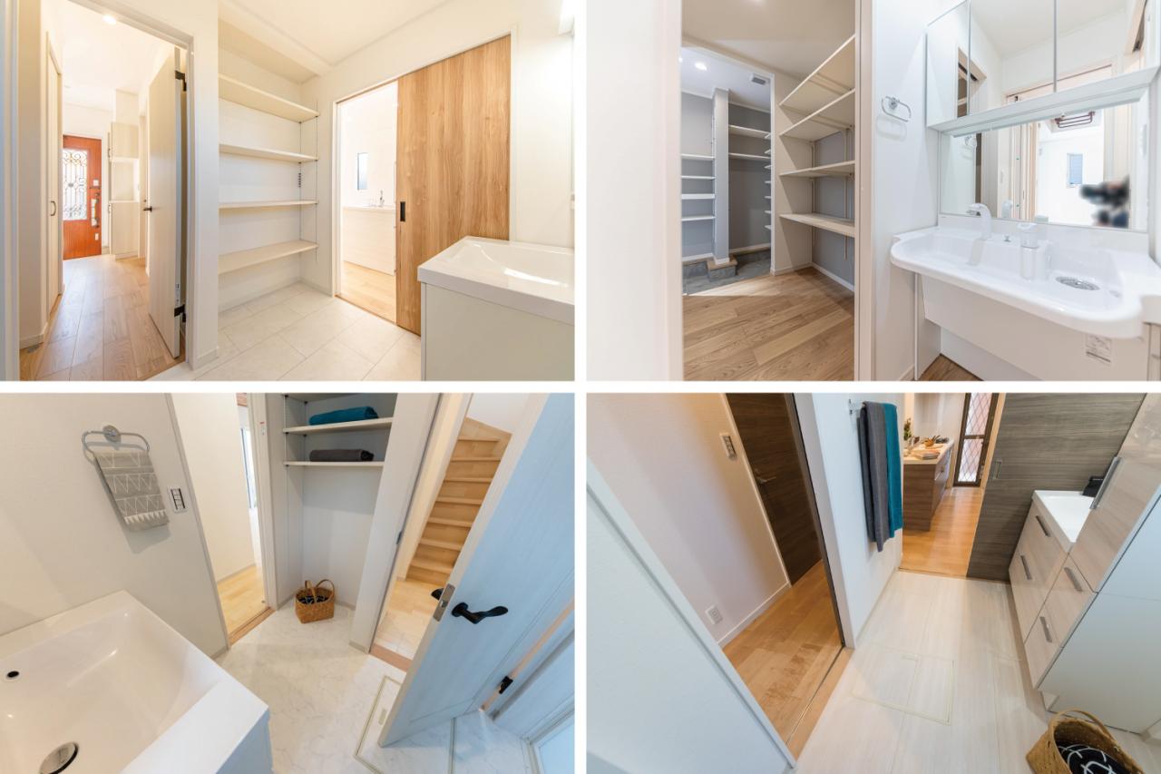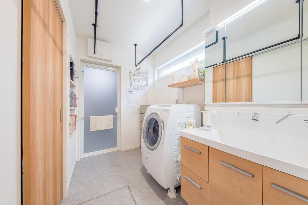 広さと使い勝手を兼ね備えたランドリールーム。リネン庫や洗濯物干しスペースを設けることで、毎日の家事がもっとスムーズに(弊社施工例)