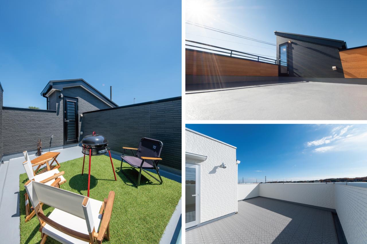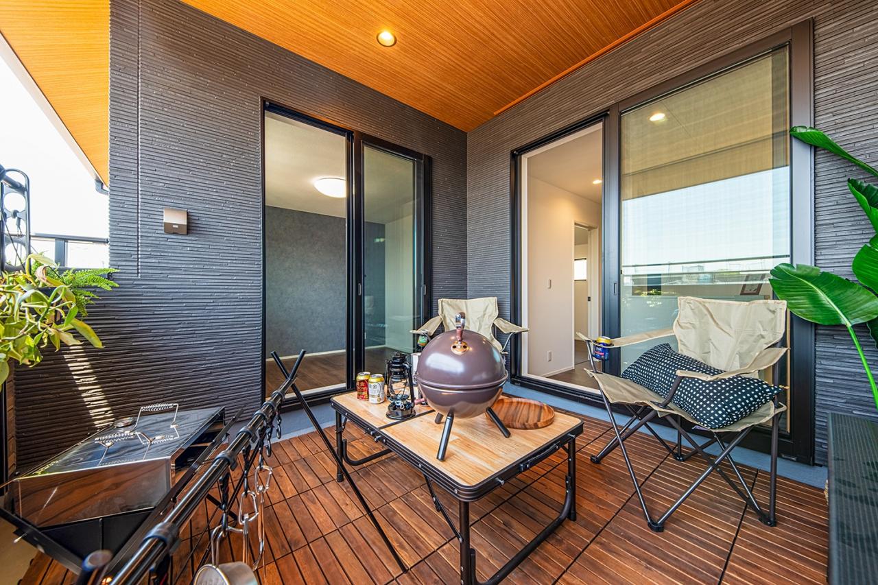 視線を気にせず楽しめる屋上の特等席。スカイバルコニーで叶える、もうひとつのリビングは、空の下でくつろぐ贅沢な時間(弊社施工例)