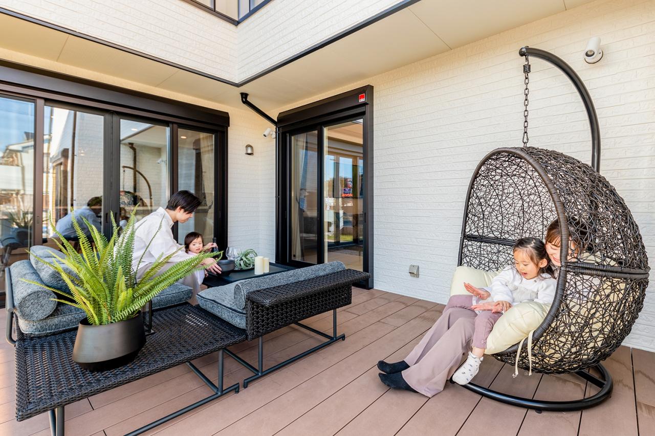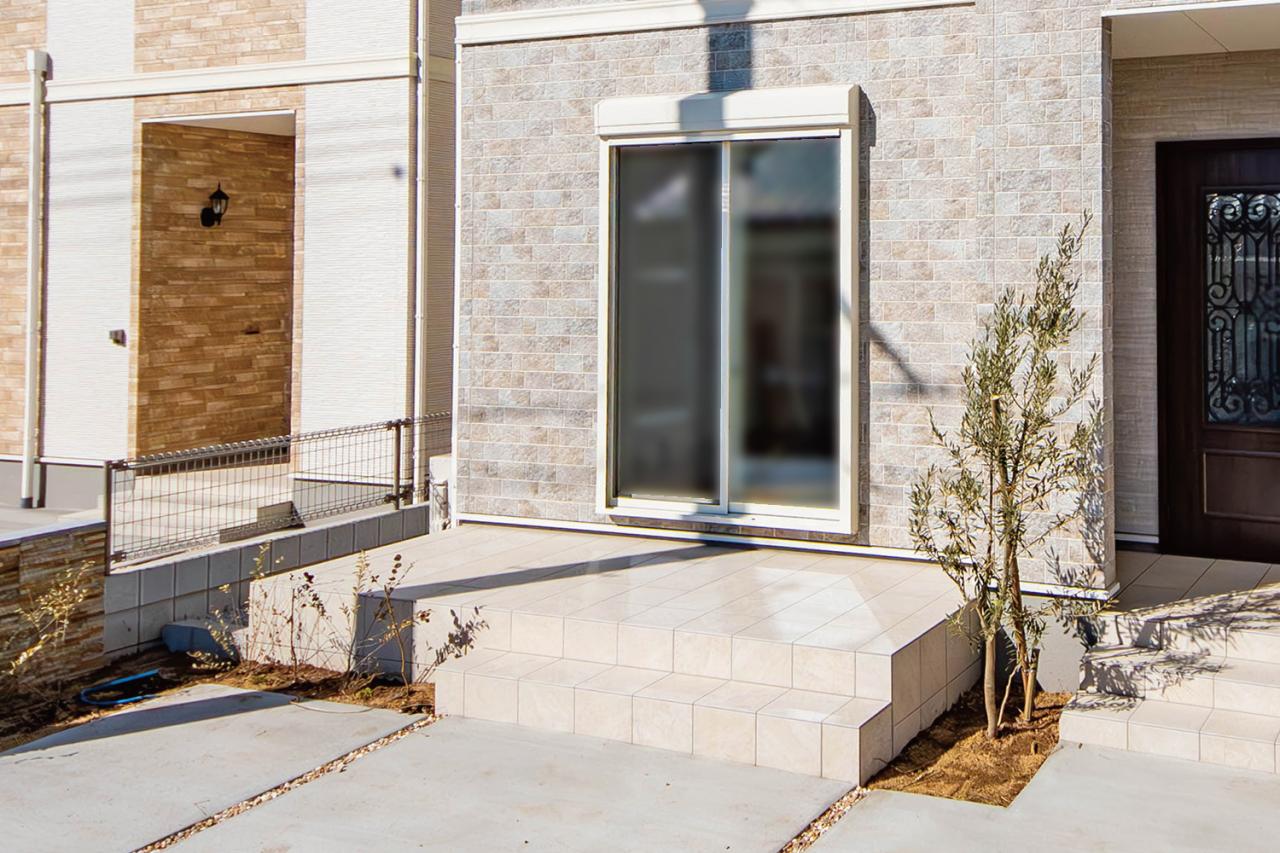 上質なタイルテラスで、毎日の暮らしに自然との調和を。リラックスしたひとときを屋外で楽しめる贅沢な空間(弊社施工例)