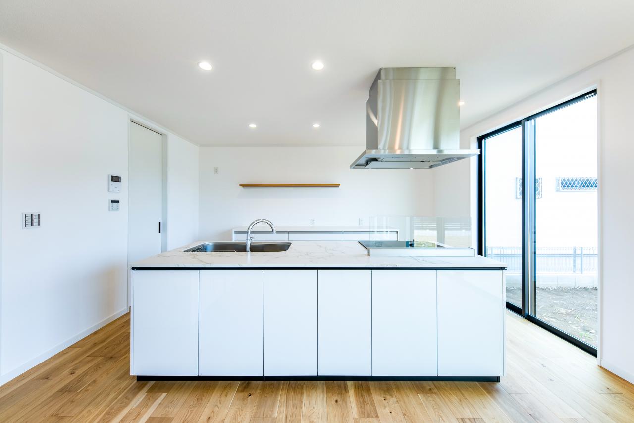 美しく開かれた空間に、日常の使いやすさを丁寧に組み込んだ設計。機能とデザインが共存するキッチンスタイル(弊社施工例)