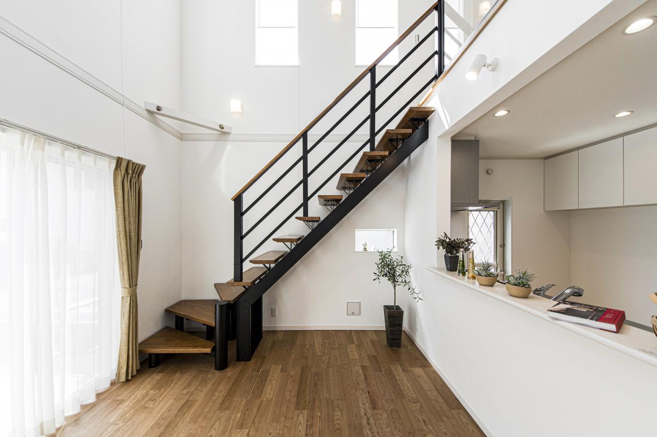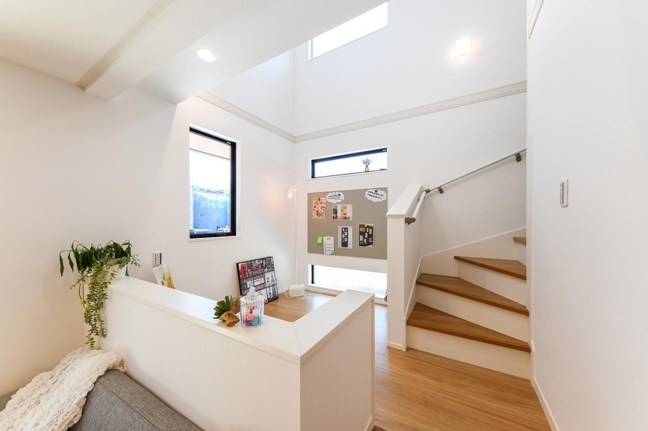 吹き抜けを取り入れた設計で、家全体が開放感にあふれる空間へ。家族が繋がる、広々とした明るい暮らしを実現します(弊社施工例)