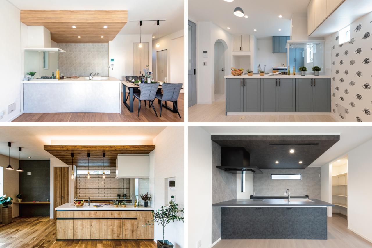 バリエーション豊かなアクセントクロスや折下天井など、個性豊かな空間を作り出し、使いやすさと美しさを兼ね備えたキッチンを実現します(弊社施工例)