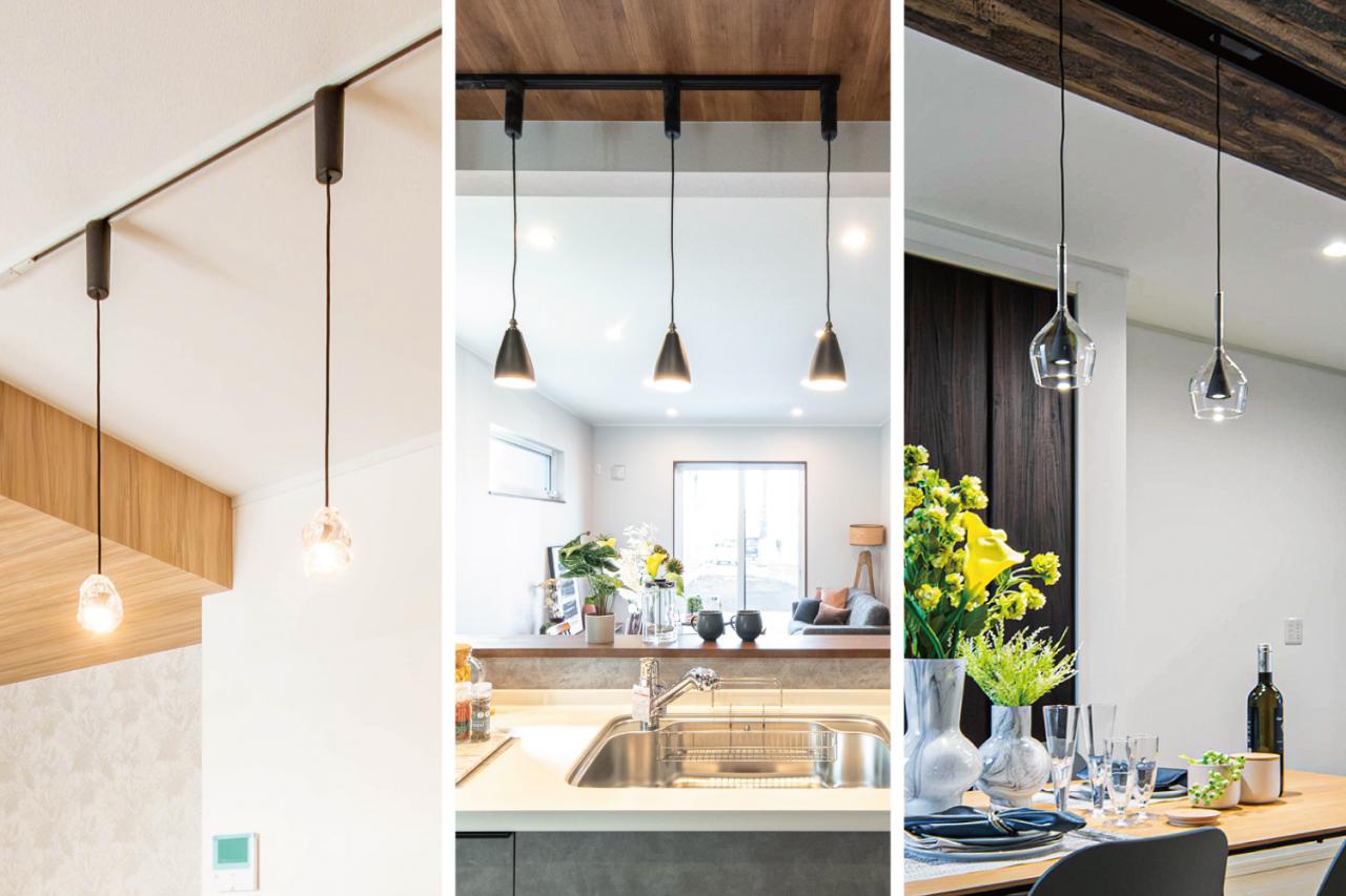 ペンダントライトで、ダイニングやキッチンの雰囲気を自分好みに演出。豊富なデザインバリエーションで、あなたのスタイルにぴったりの照明を(弊社施工例)