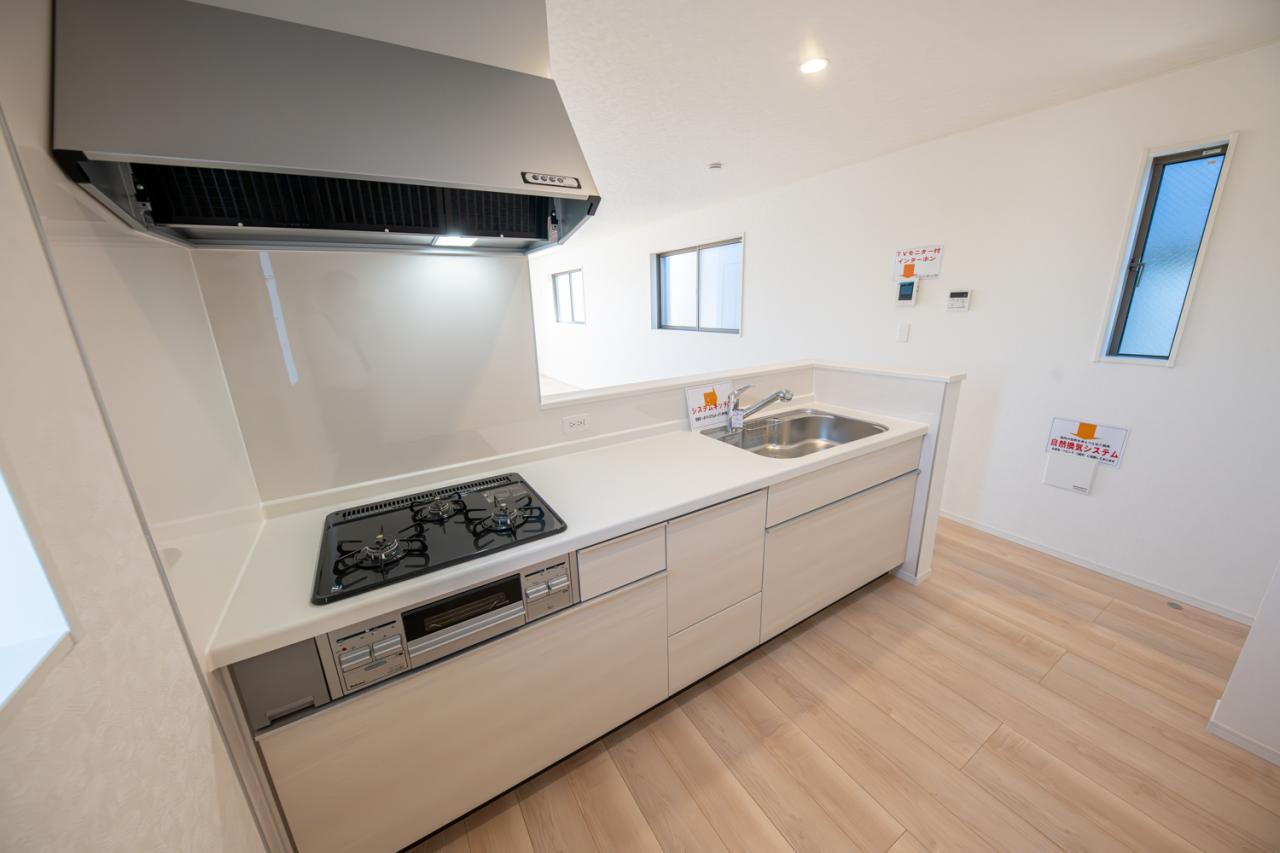 ■料理中でもリビングにいるお子様の様子を見守れる対面キッチン