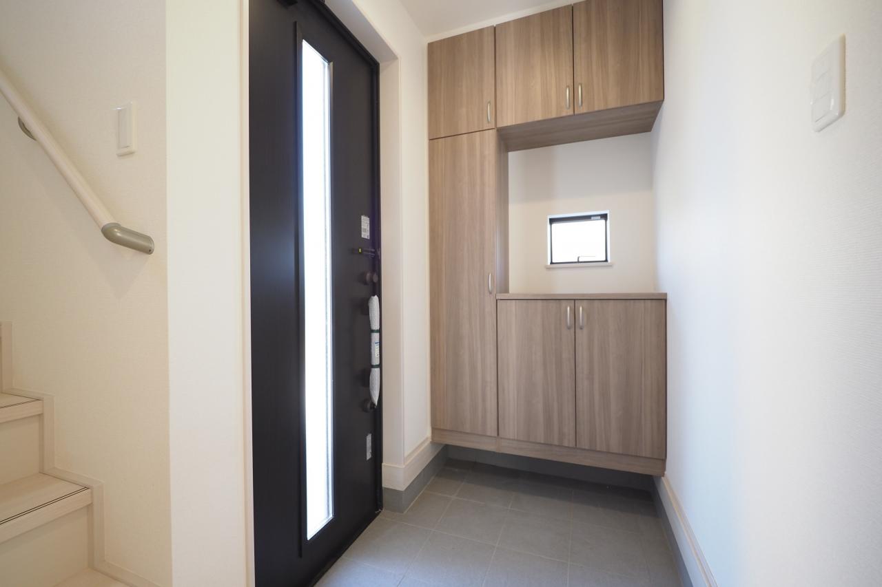 コの字型シューズボックスを設けた、ゆとりの玄関ホール