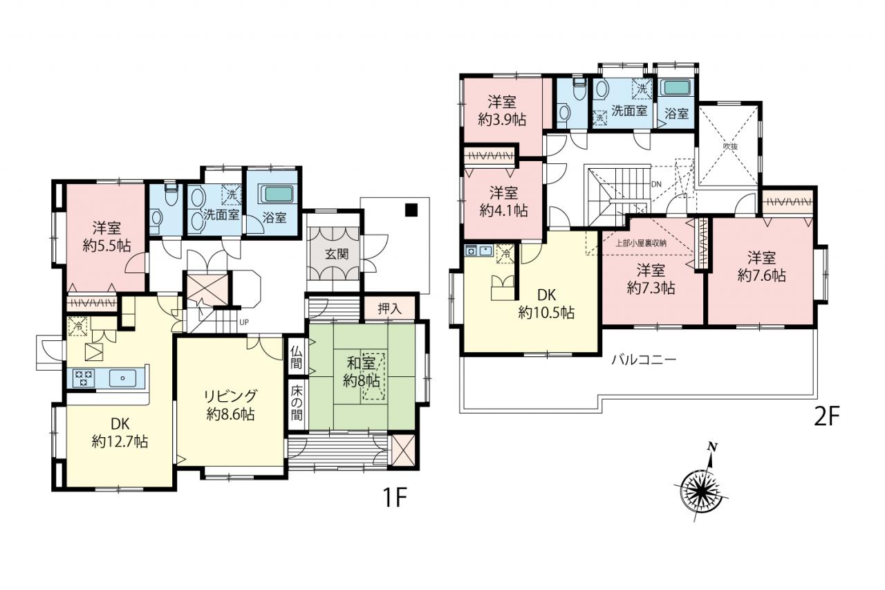 | 備考 | - 部屋詳細:1階/L8.6帖・DK12.7帖・和8帖・洋5.5帖、2階/DK10.5帖・洋7.6帖・洋7.3帖・洋4.1帖・洋3.9帖 カースペースは車種により制限がございます |