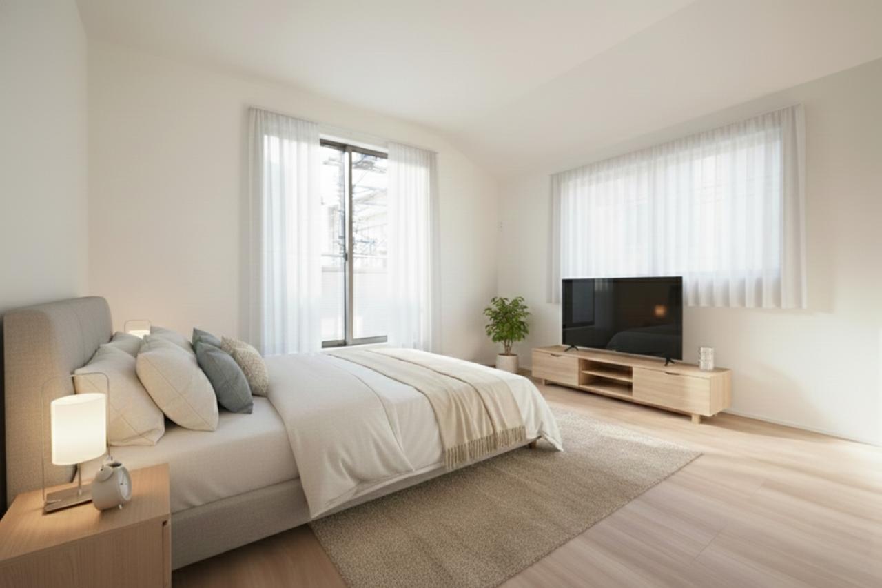 主寝室にふさわしい広い洋室。バルコニー開口部による開放的な空間を、ぜひご体感ください ※家具や小物はCGによるイメージです