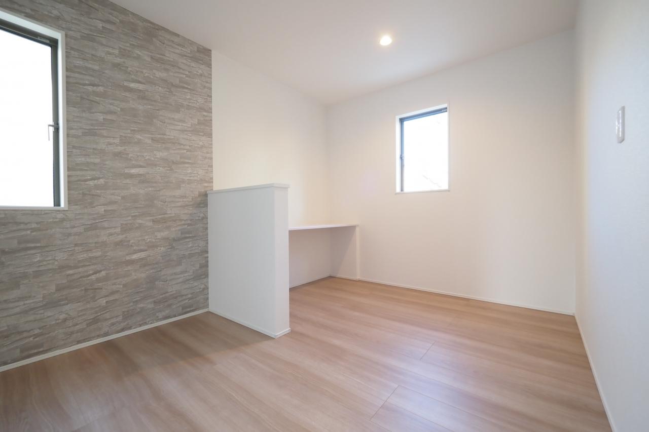 ワークスペースを備えた19帖の大型リビング。また、全ての居室を6帖以上にすることで、ゆとりのある生活空間をデザインいたしました