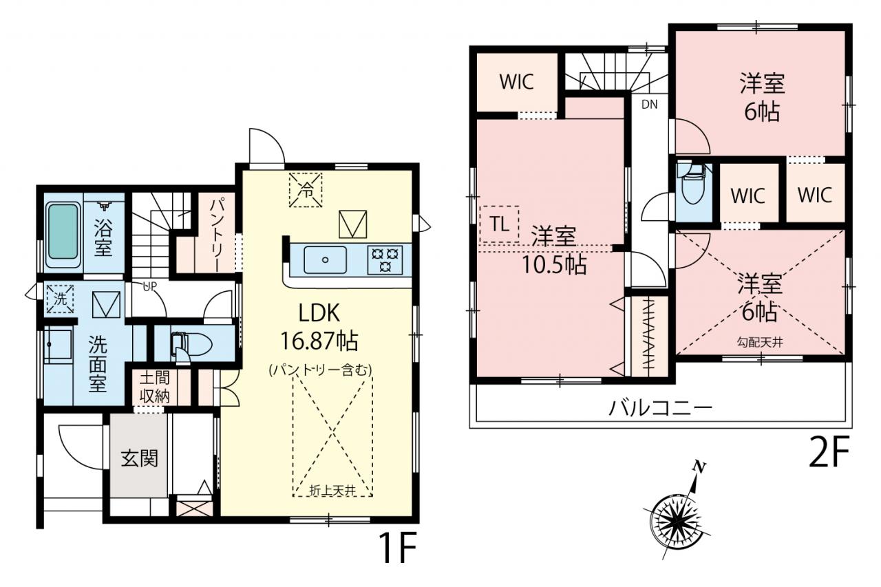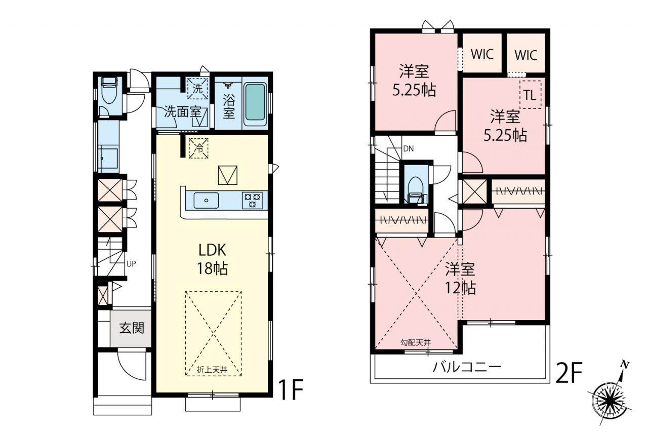 | 土地面積 | 120.04m2(36.31坪)~122.53m2(37.06坪) | 建物面積 | 103.30m2(31.24坪)~105.88m2(32.02坪) |