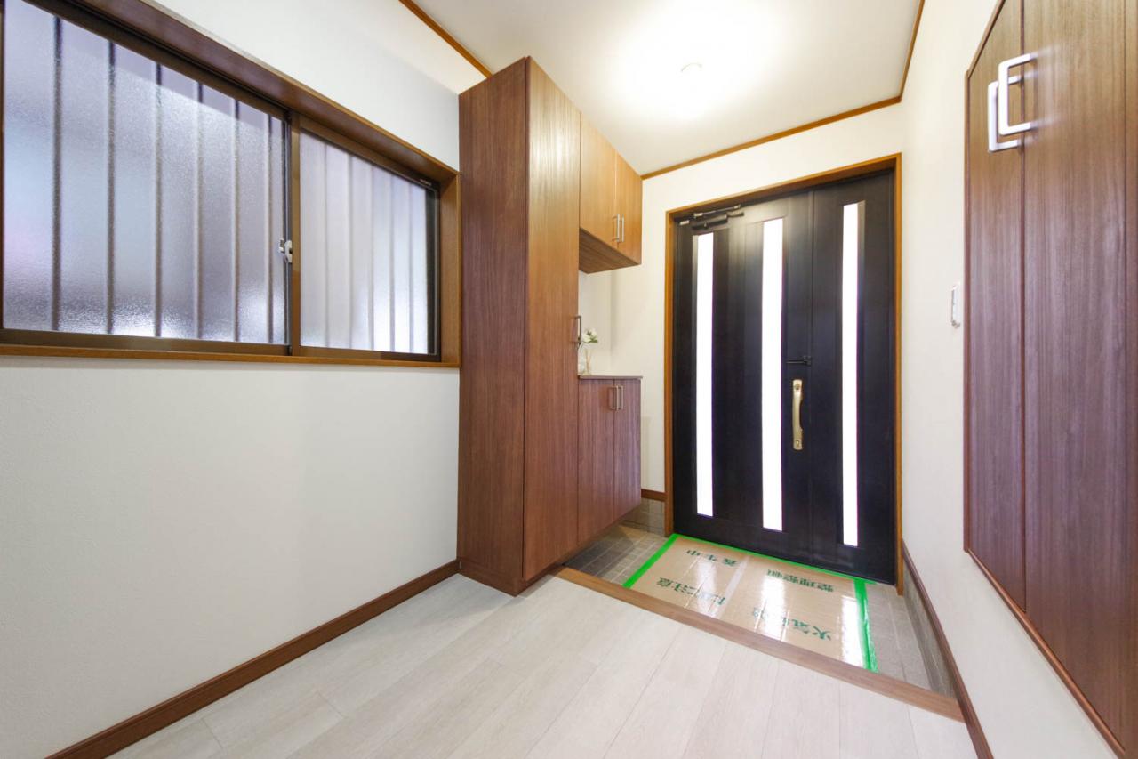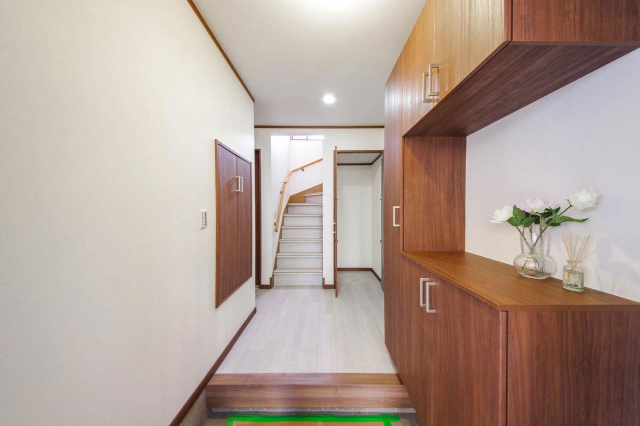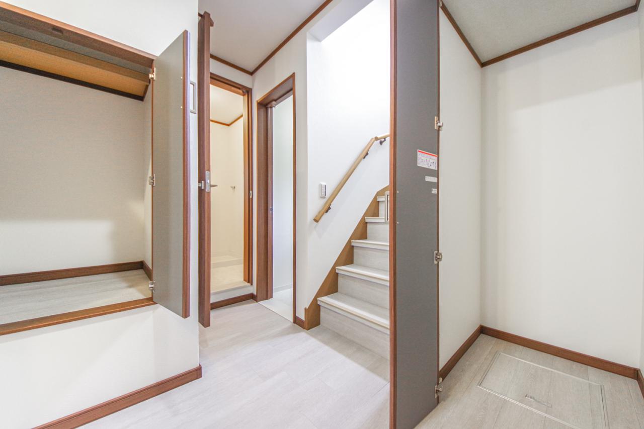 大型シューズボックス付きの玄関。玄関内も非常に綺麗に仕上がっています。