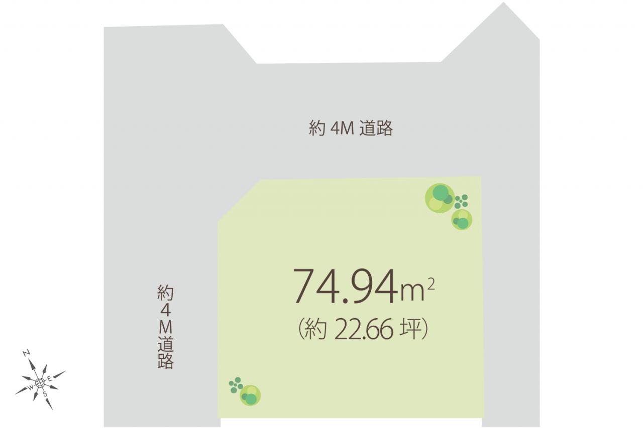 | 接道 | 北西側 4.0m 角地 私道 位置指定:有、北東側 4.0m 角地 私道 位置指定:有 | 私道負担 | 私道負担有 |