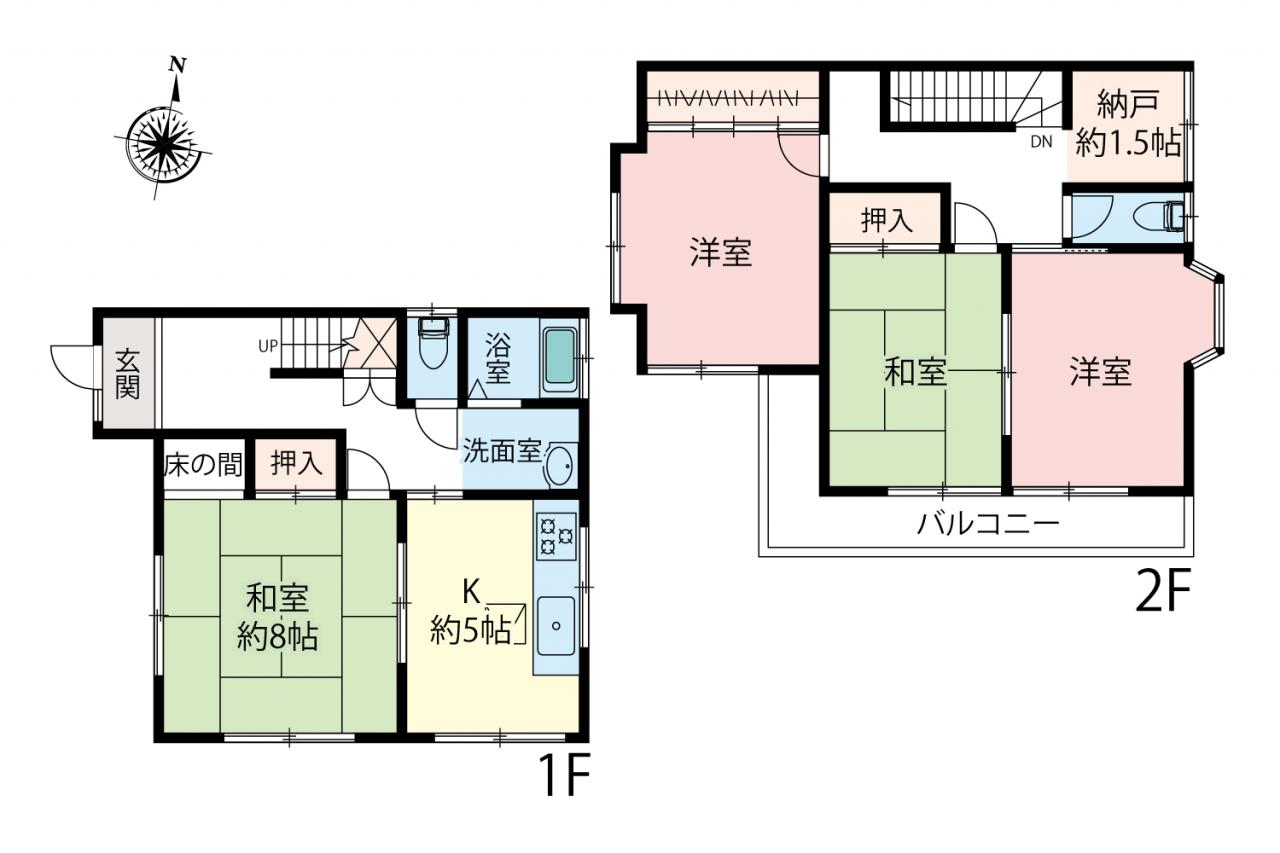 | 設備 | 都市ガス / 公営水道 / 汚水:公共下水 閑静な住宅地 / 整形地 / 平坦地 / 始発駅 / 2階建 / 2面採光 / 出窓 / 和室 / クッションフロア / 床下収納 / クローゼット / シューズボックス / 納戸 / システムキッチン / 浴室に窓 / 追焚機能 / 浴室暖房 / シャワー付洗面化粧台 / トイレ2ヶ所 / 温水洗浄便座 / バルコニー / 南面バルコニー / 駐車2台可 / TVモニタ付インターホン / 内外装リフォーム / 内装リフォーム / 外装リフォーム / スーパー 徒歩10分以内 / 小学校まで1km以内 / 隣家との間隔が大きい / 保育施設・幼稚園400m以内 / 隣家との間隔が広い / 都市ガス |