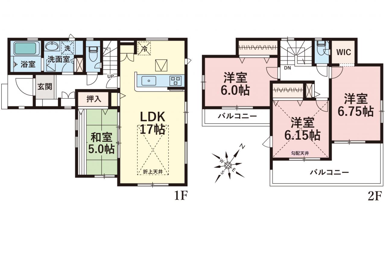 ■4LDK+WIC、LDK17帖+和室5帖、2階居室6帖以上