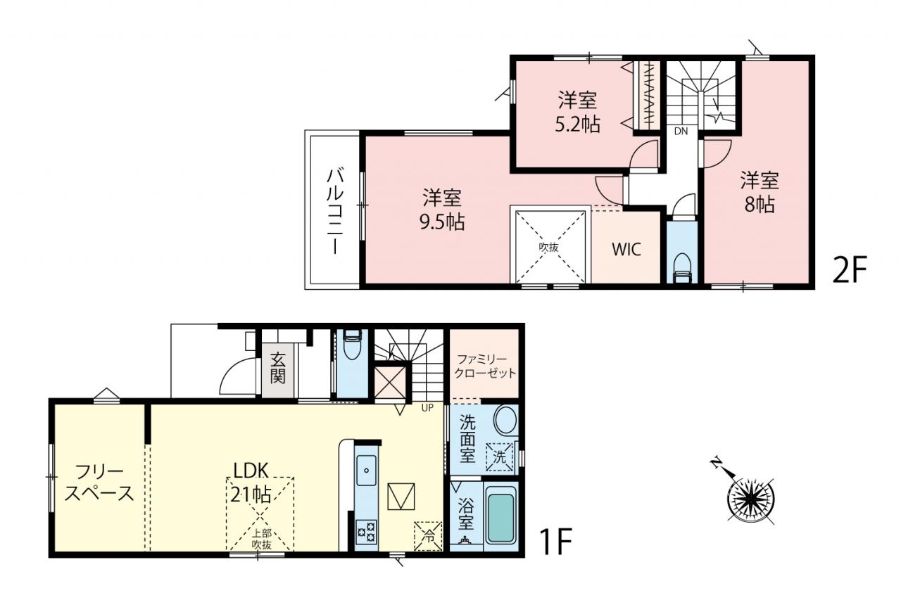 | 土地面積 | 105.58m2(31.93坪)~107.21m2(32.43坪) | 建物面積 | 98.95m2(29.93坪)~102.67m2(31.05坪) |