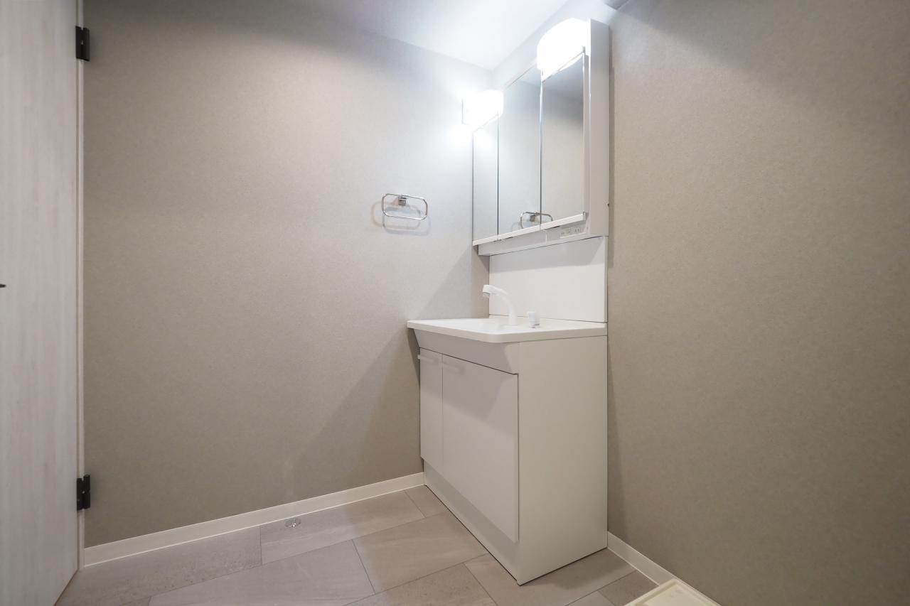 シックで落ち着きのある印象に仕上げたサニタリールーム。