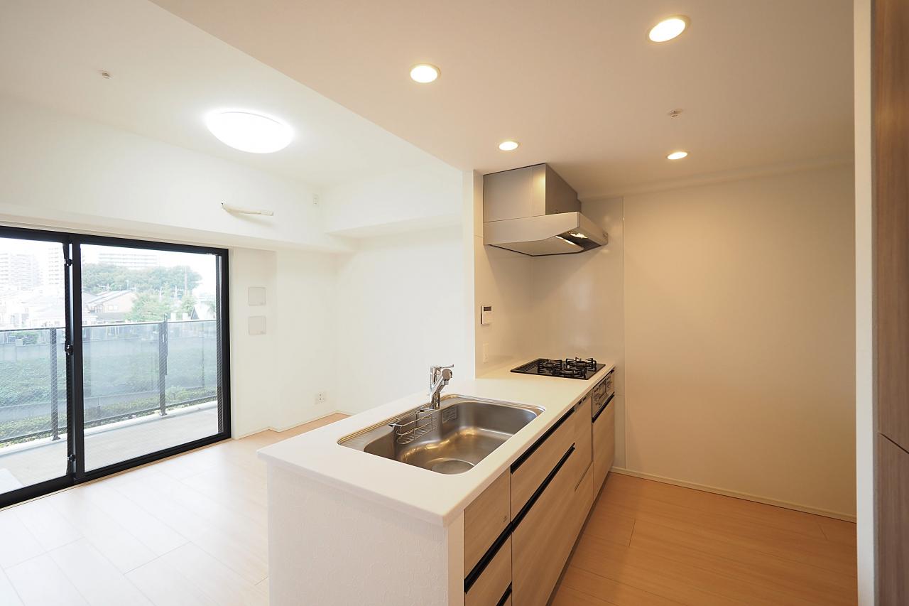 リビングを見渡せる対面式キッチン。家事をしながらご家族との会話も弾みます。