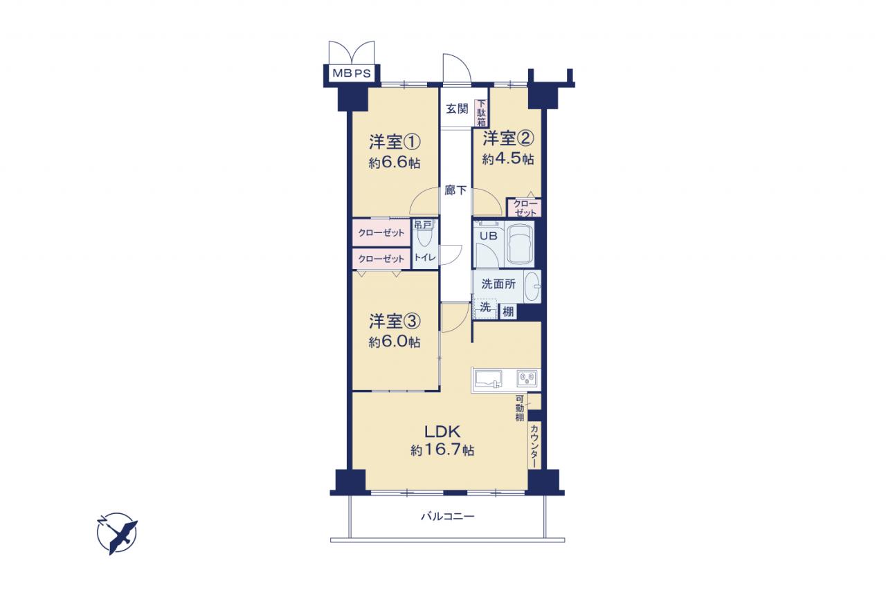 | 専有面積 | 70.76m2(21.4坪) | 所在階 | 9階 |