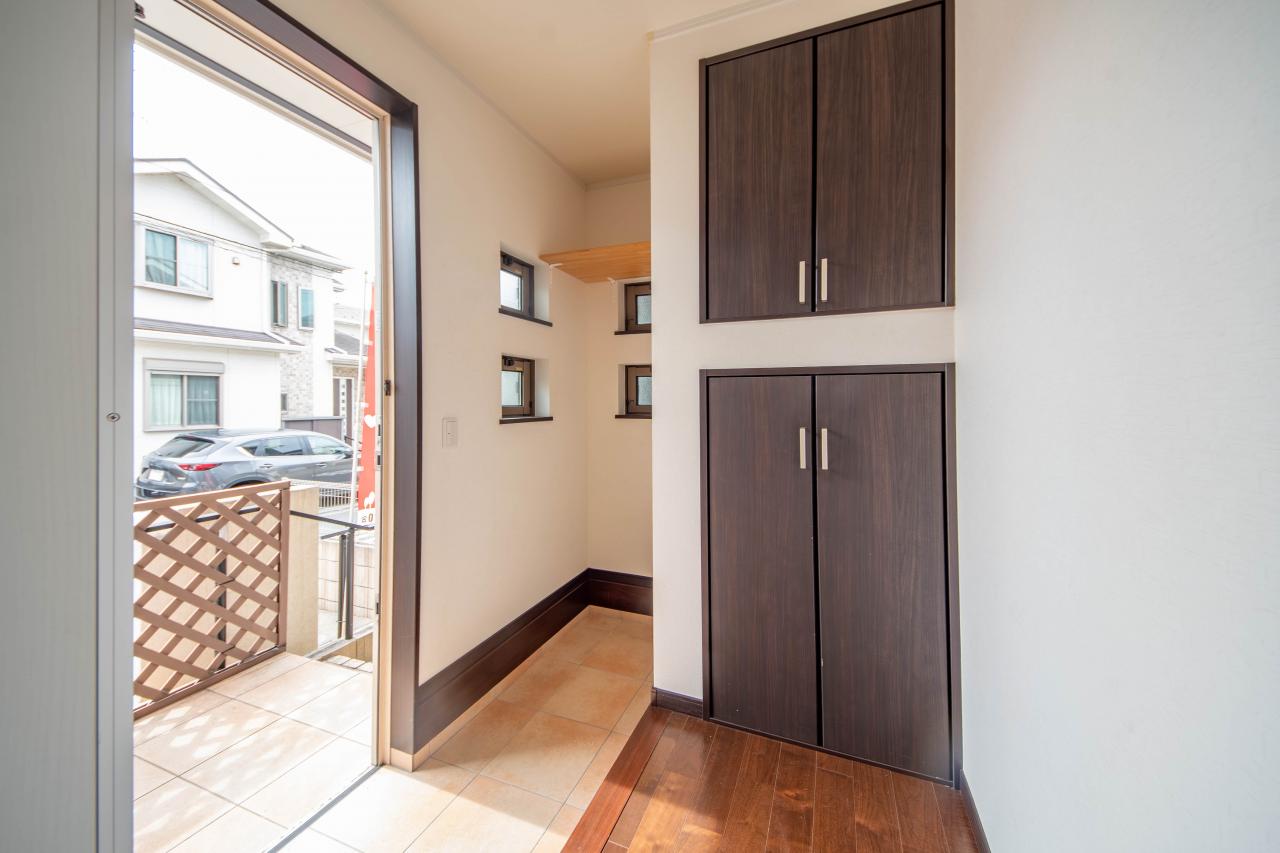 土間とホール部分に各々収納が造作された玄関ホールです