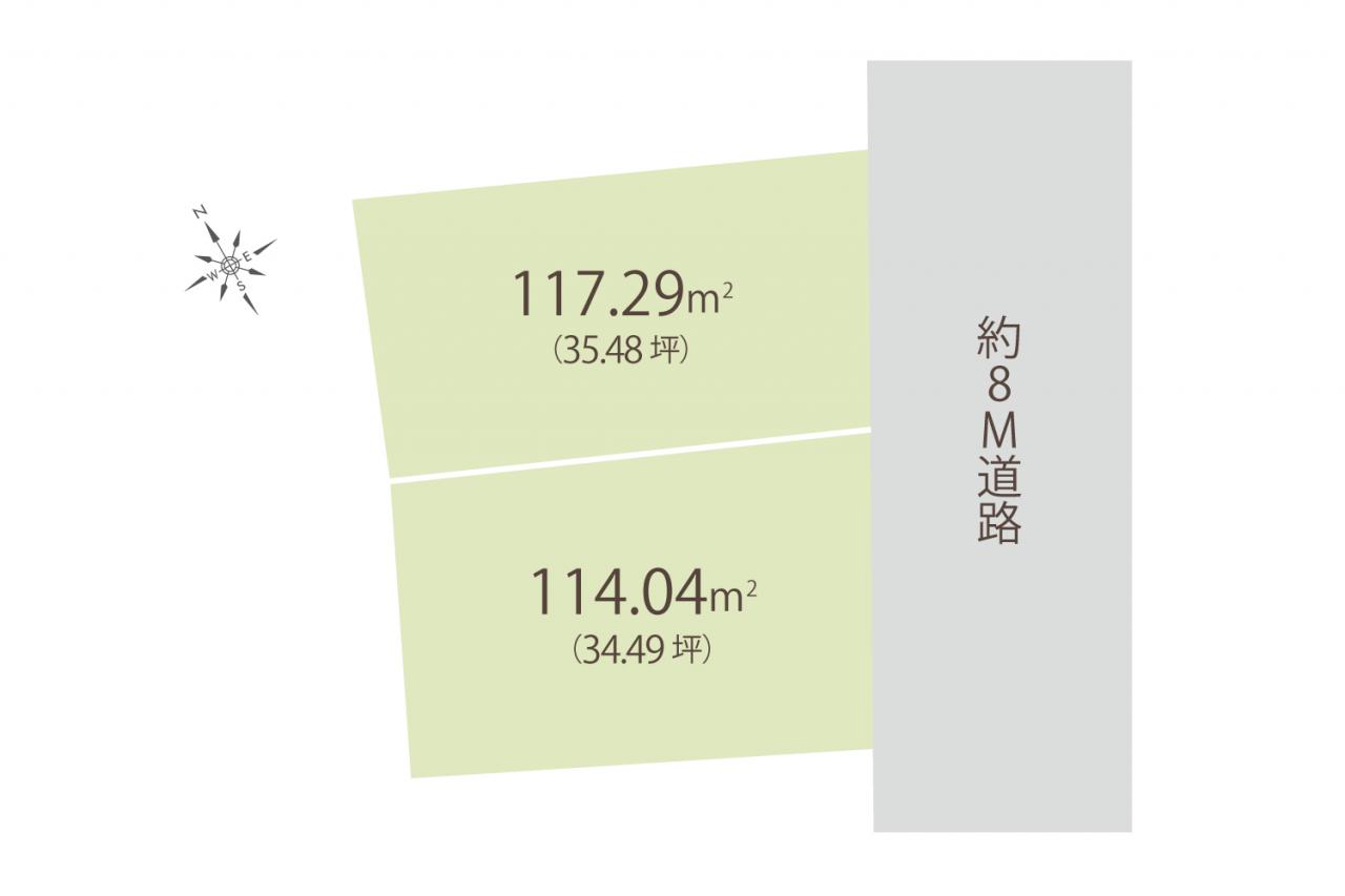 | 土地面積 | 114.04m2(34.49坪)~117.29m2(35.48坪) | 建築条件 | 無 |