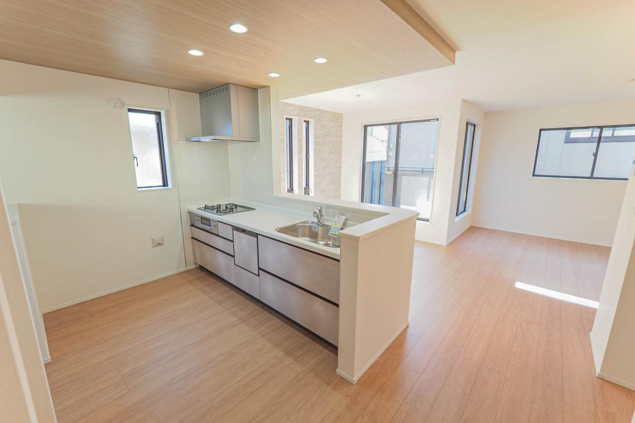 LDK全体に一体感と解放感を演出するオープンキッチン