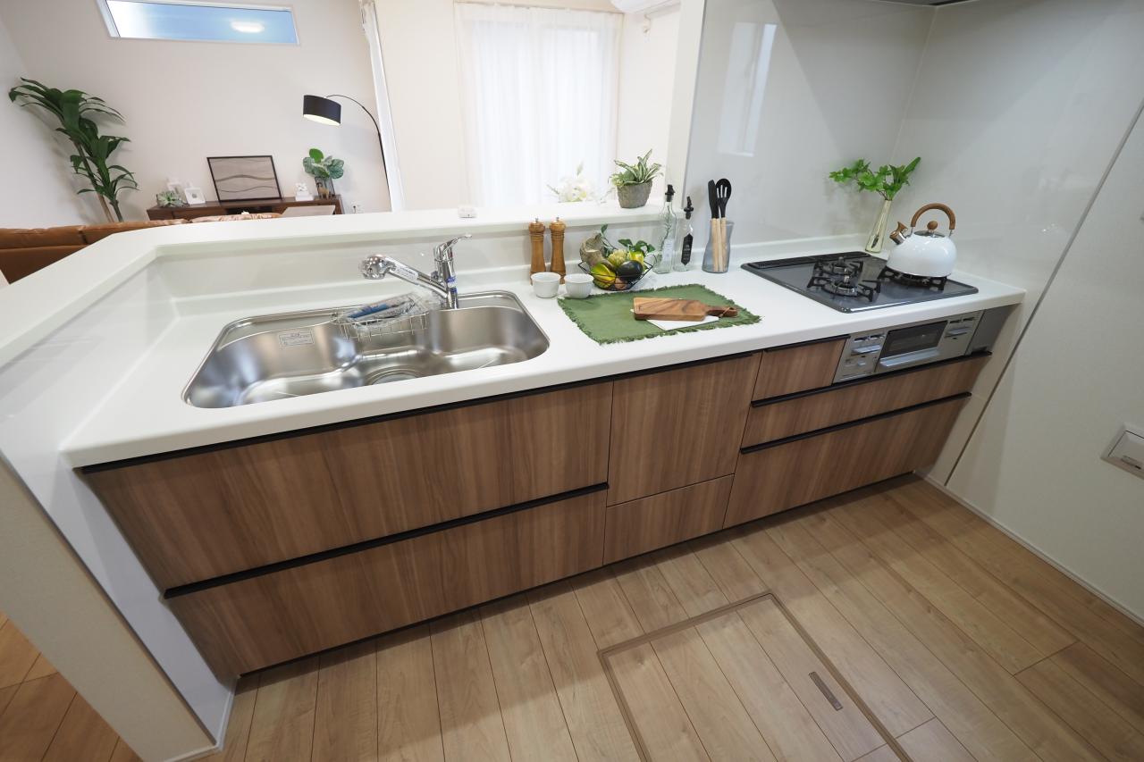 ■料理中でもリビングにいるお子様の様子を見守れる対面キッチン
