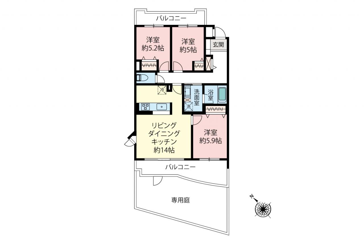 | 専有面積 | 70.30m2(21.26坪) | 所在階 | 1階 |