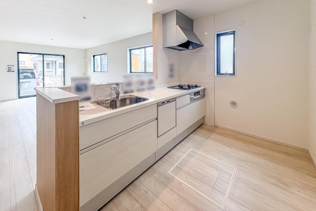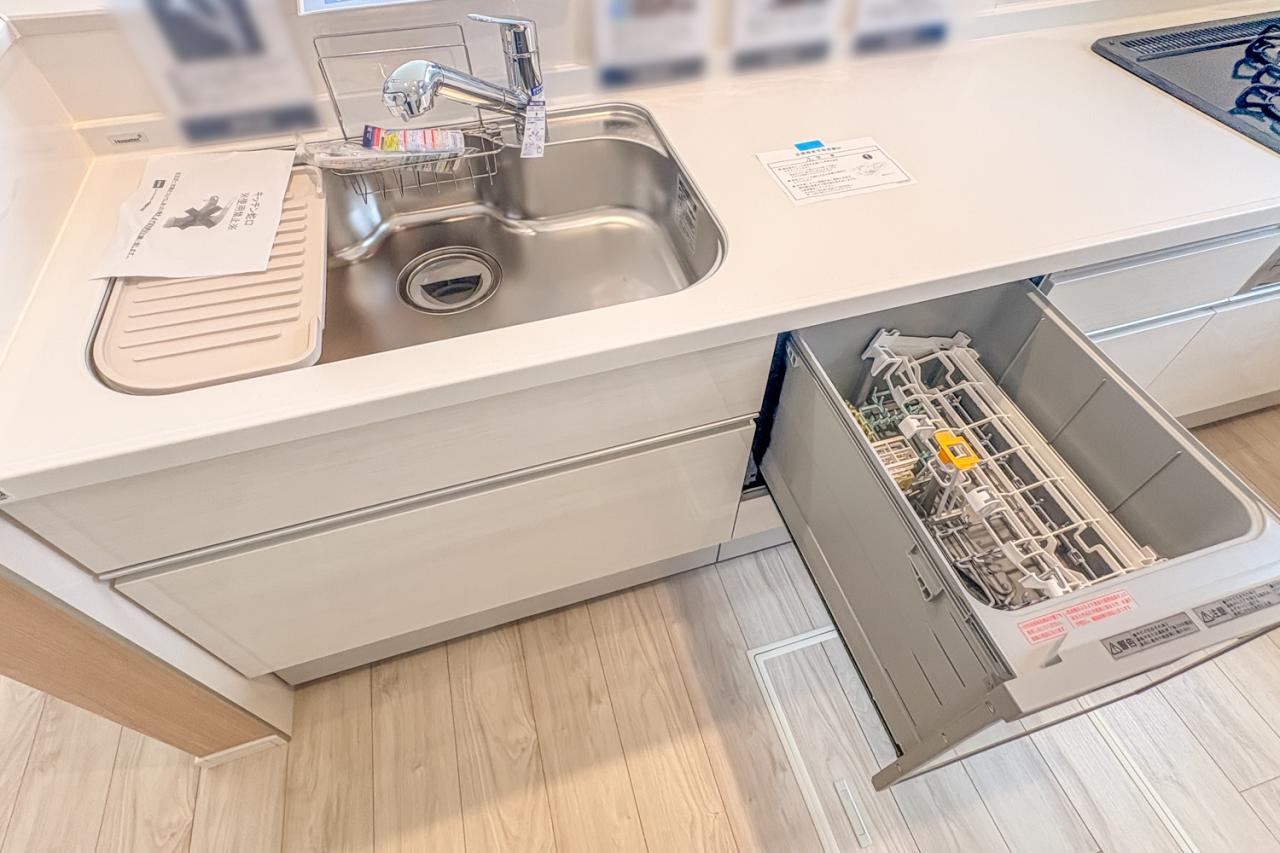 ■食洗機+浄水器付、料理中でもリビング全体を見渡せる対面キッチン