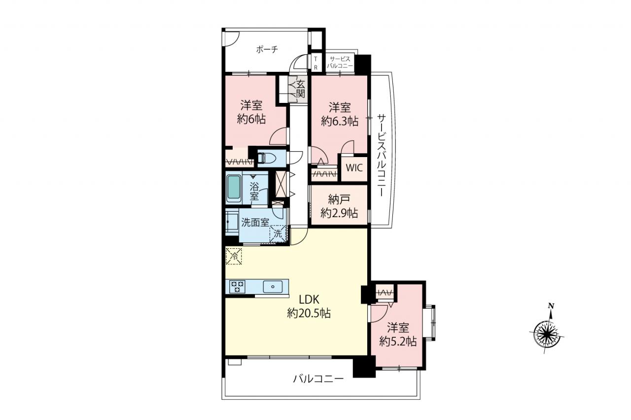 三方角部屋 LDK20.5帖 WIC ポーチ トランクルーム オートロック