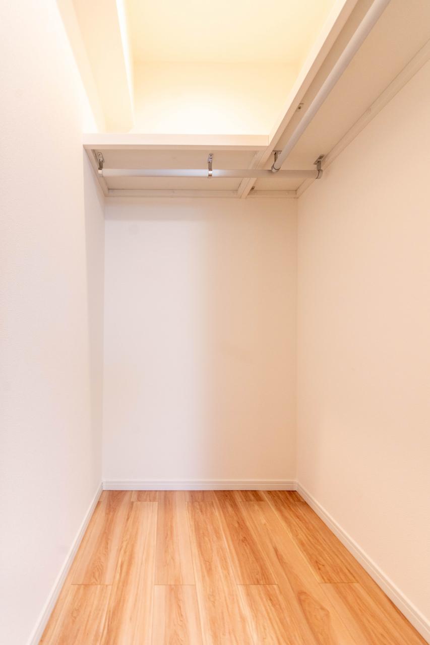 WIC|上部には棚も備えられており、バッグや靴などもスッキリ収納可能です。