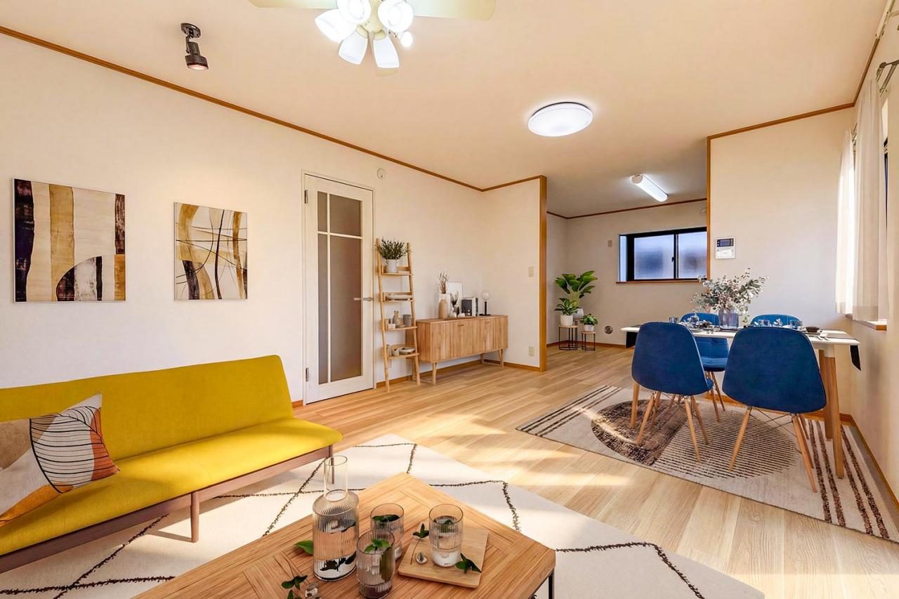 南西からの温かな陽光を取り込む、開放的なリビングスペース ※家具や小物はCGによるイメージです