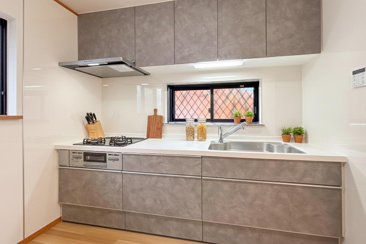 上下に収納を備えた壁付けシステムキッチン ※家具や小物はCGによるイメージです