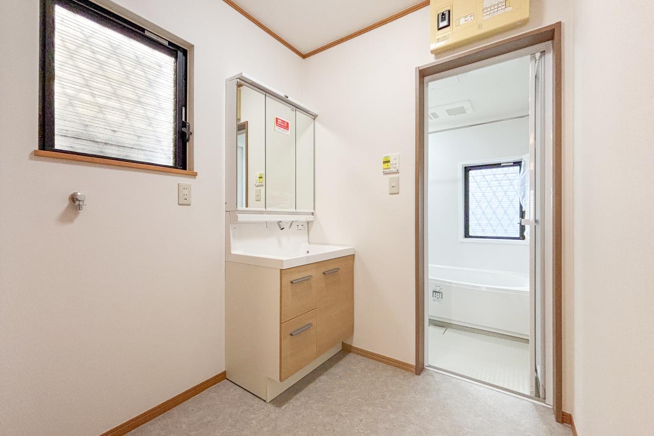 収納空間が豊富に揃う、三面鏡シャンプードレッサー付き