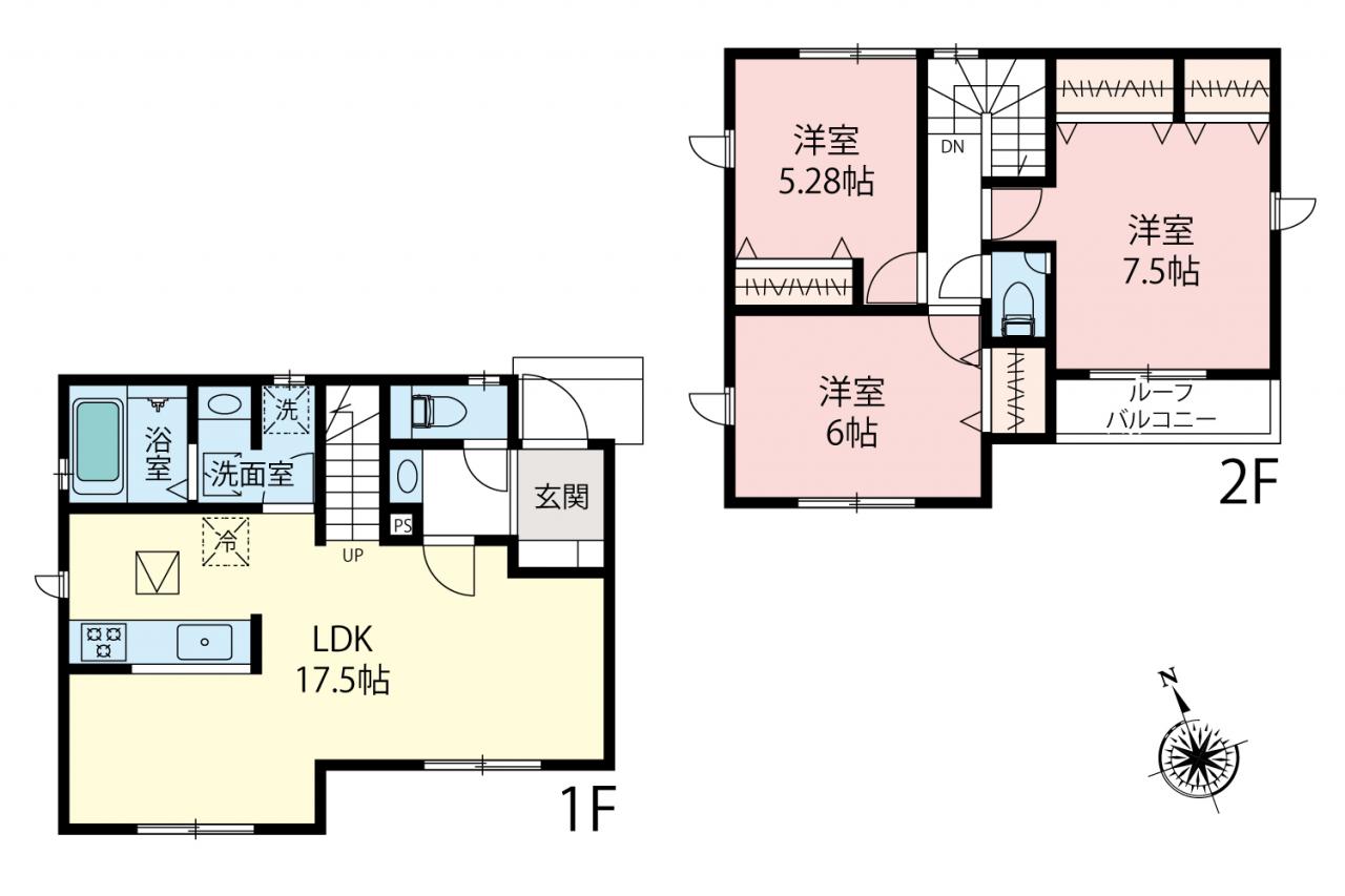| 土地面積 | 137.16m2(41.49坪)~144.59m2(43.73坪) | 建物面積 | 86.94m2(26.29坪)~96.05m2(29.05坪) |