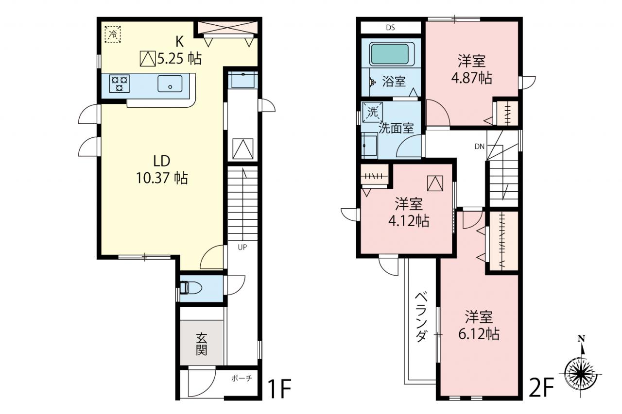 | 土地面積 | 80.15m2(24.24坪)~80.16m2(24.24坪) | 建物面積 | 77.75m2(23.51坪) |