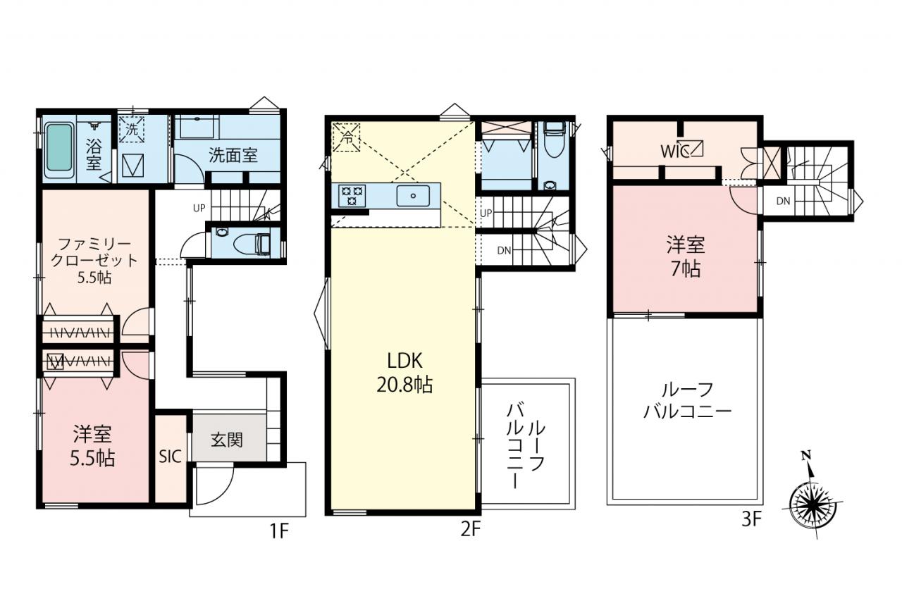 新所沢駅まで徒歩11分 LDK約20.8帖 食洗機 WIC ルーフバルコニー(2箇所) ペアガラス ファミリークローゼット