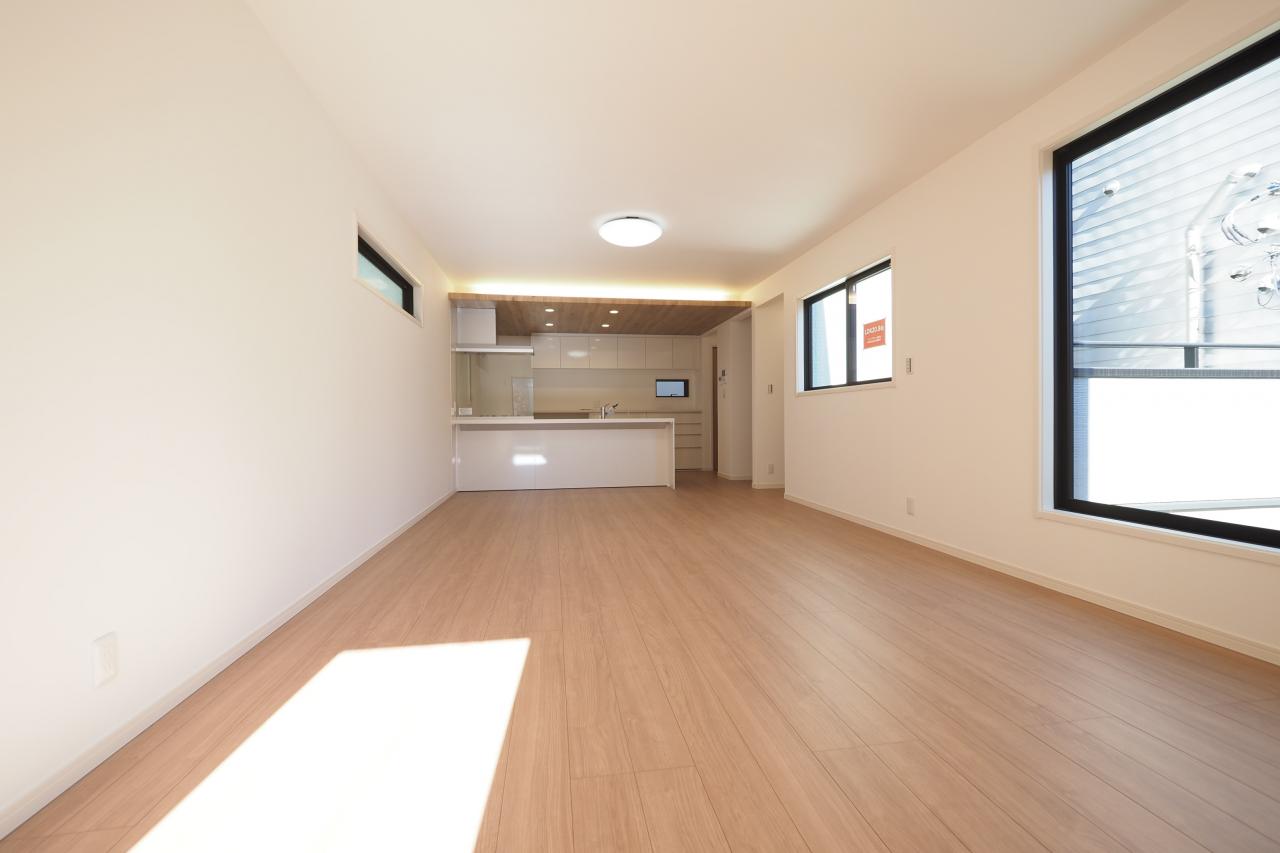 20帖超の開放的な2階リビング。光を浴びてゆったり過ごす一日はいかがですか。