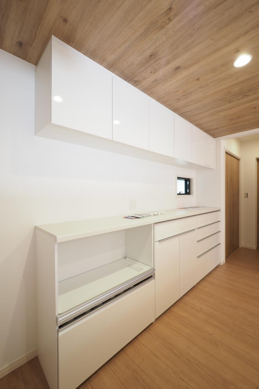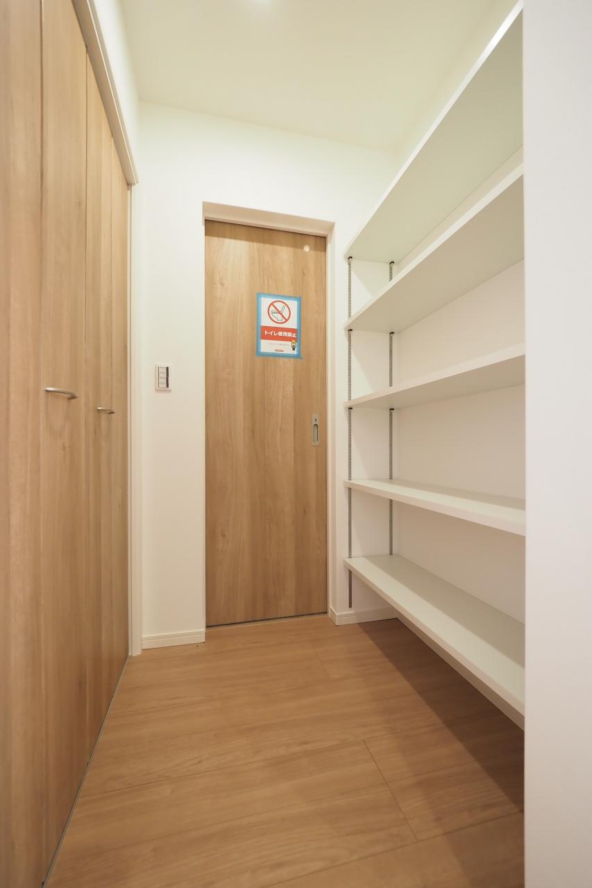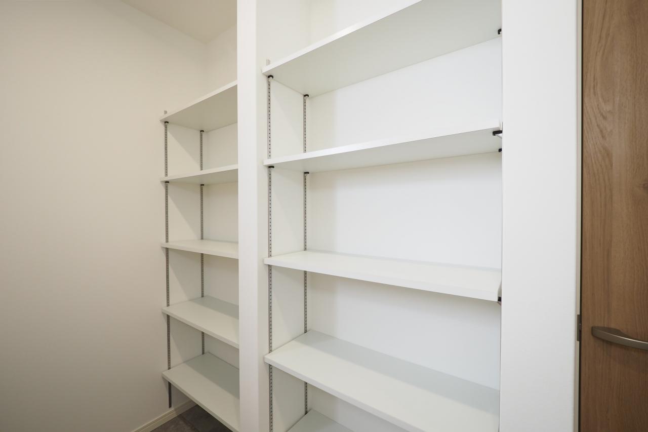 キッチン横のパントリースペース。買い物あとの片づけがスムーズにできます。