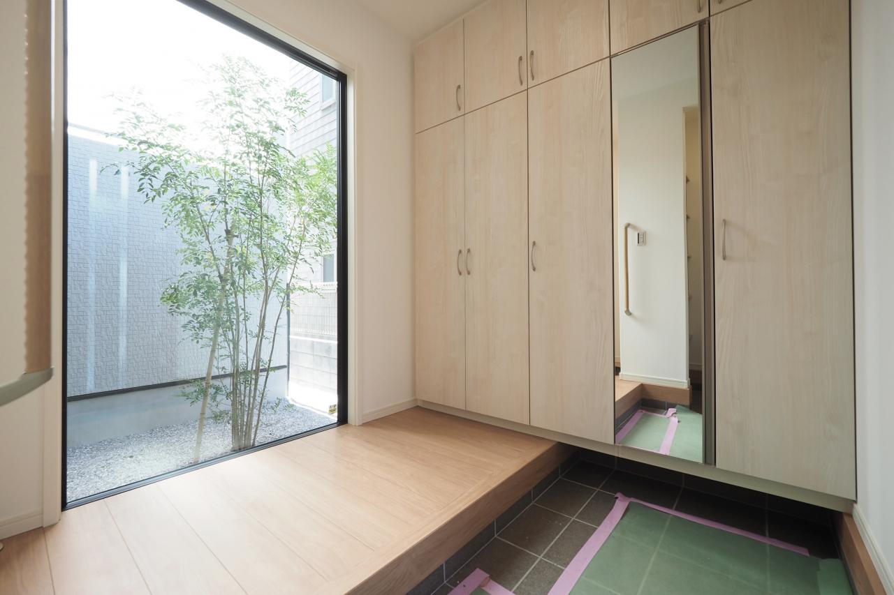 シューズインクローゼット付き。眺望が良く明るい玄関。
