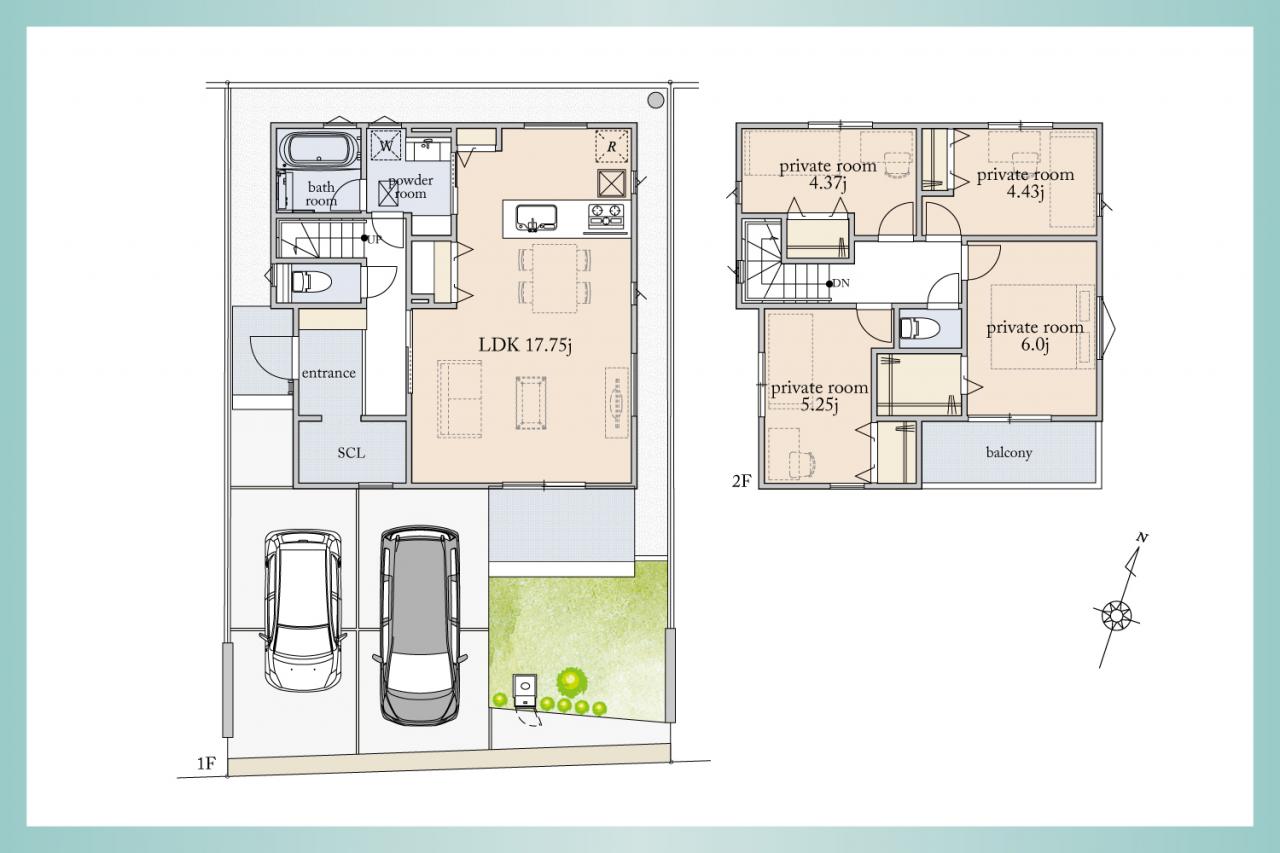 当分譲地は狭山市駅から最短徒歩6分、カースペースは2台分、さらにIoT設備を搭載したスマートハウスになります。間取りは全棟一級建築士が携わっており、細部にまで拘りぬいた邸宅に仕上がりました。