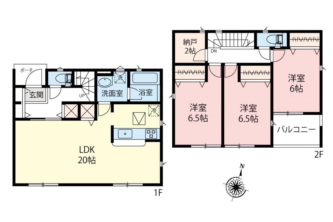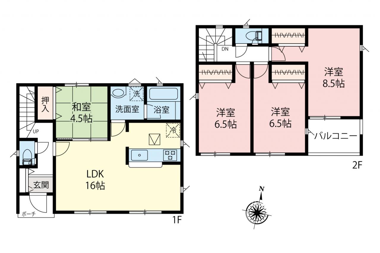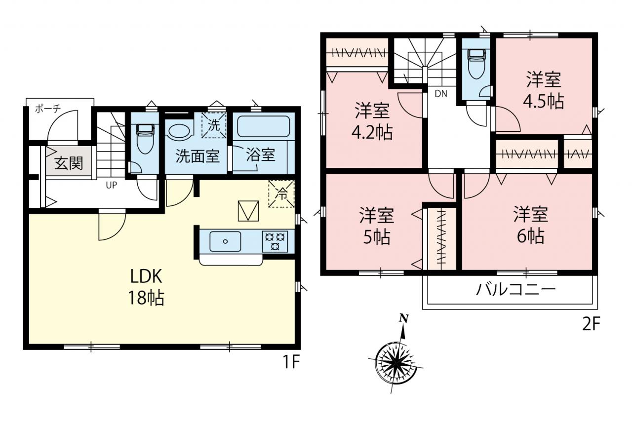 | 土地面積 | 122.35m2(37.01坪)~132.55m2(40.09坪) | 建物面積 | 89.10m2(26.95坪)~100.44m2(30.38坪) |