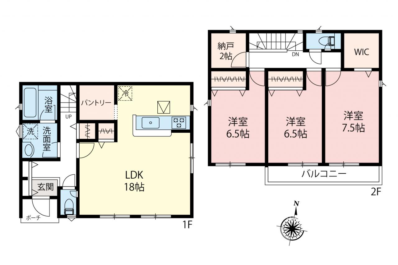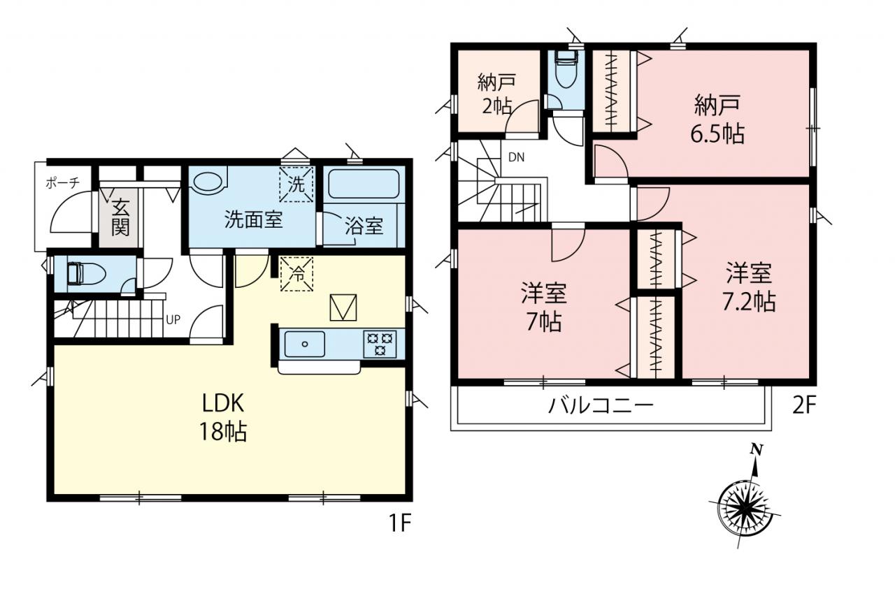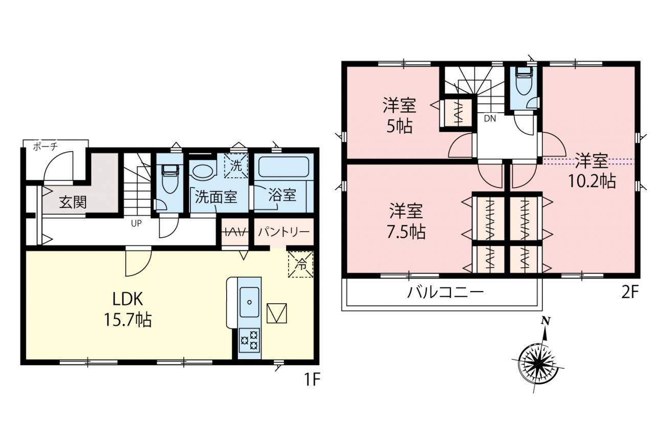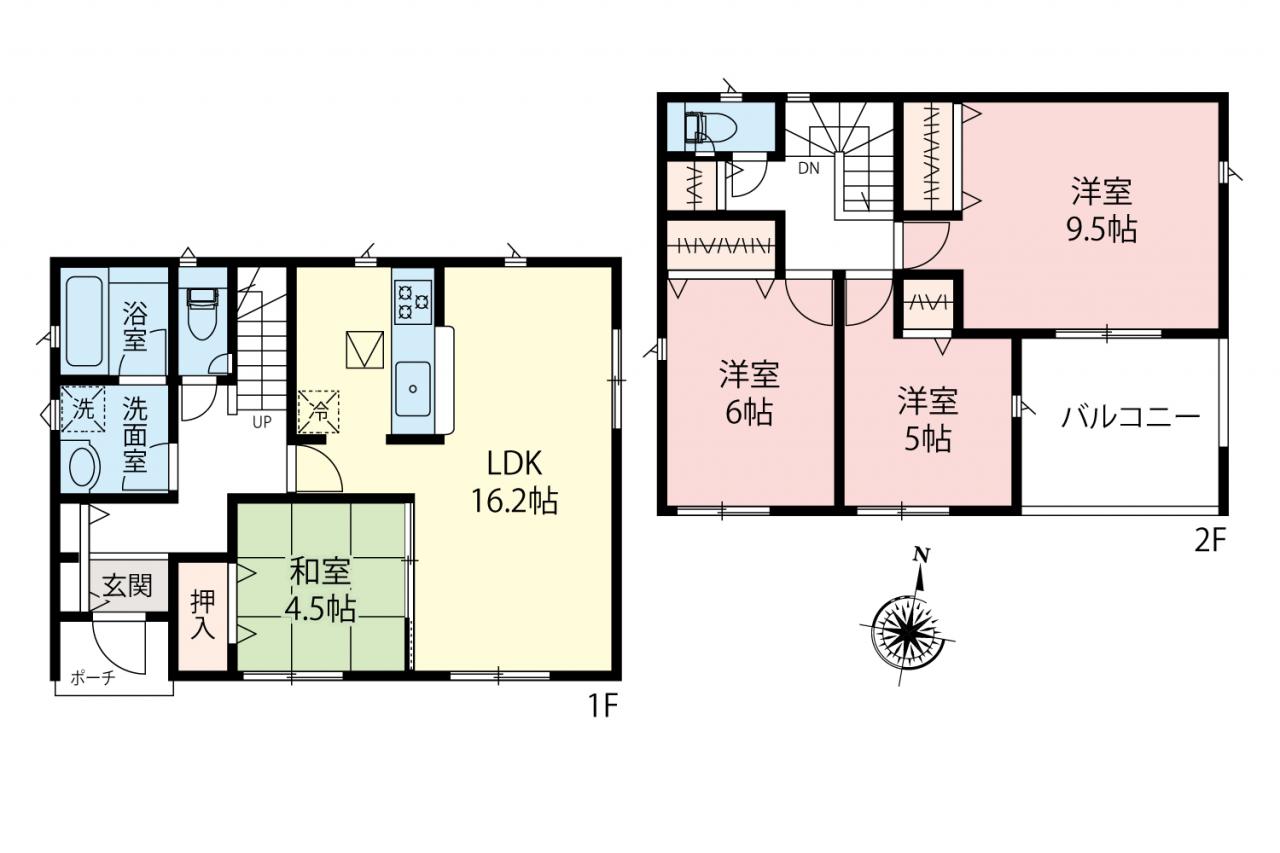 | 土地面積 | 122.35m2(37.01坪)~132.55m2(40.09坪) | 建物面積 | 89.10m2(26.95坪)~100.44m2(30.38坪) |