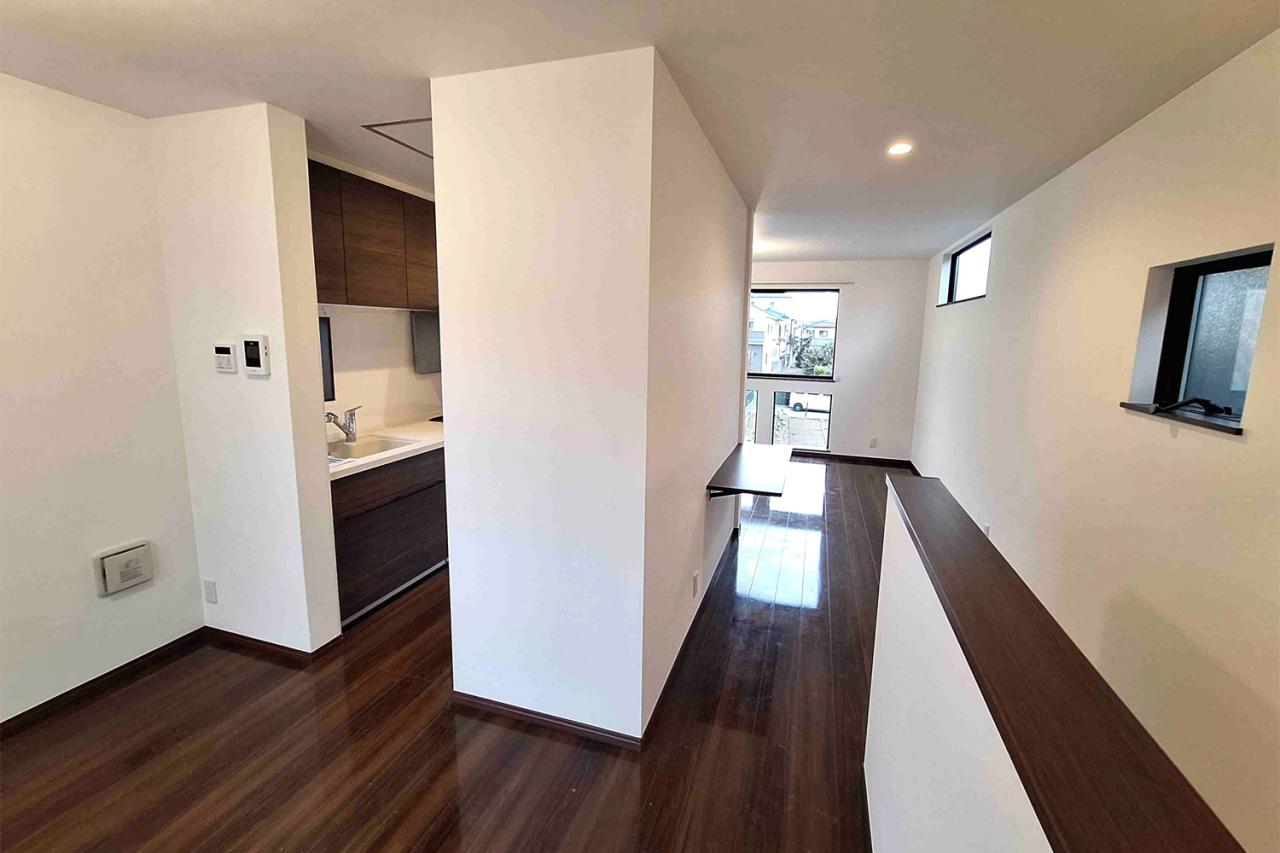 お客様をお招きしたり、みんなが寛いだりする2階LDKは、キッチンが見えにくい工夫がされてるおしゃれな間取のお家です。
