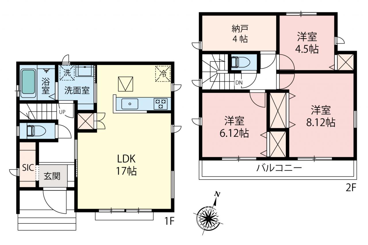 | 土地面積 | 110.16m2(33.32坪)~120.18m2(36.35坪) | 建物面積 | 95.22m2(28.8坪)~96.88m2(29.3坪) |