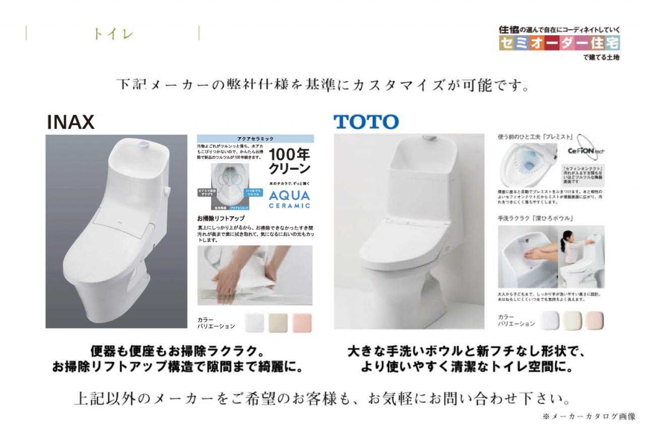 リクシル製EV/お手入れが楽になるワイドボウルを採用。収納付きの三面鏡つき。/建築プラン例(内観同仕様)/建物面積89.43m2/建物価格2150万円