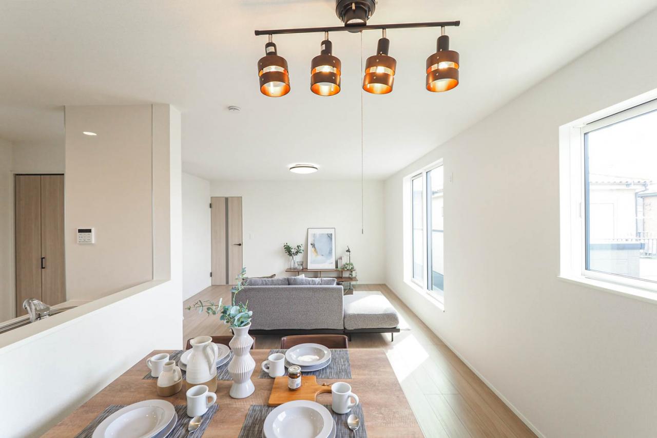 耐震等級3を取得した設計性能評価付きの住まいで、全室南向きのため室内は落ち着いた明るさが広がります。配膳や片付けがしやすいオープンカウンターの対面キッチンを採用し、各室収納やペアガラス、エコジョーズなど日々の暮らしを支える設備も整っています。住まい探しの参考に、ぜひ一度お問い合わせください。