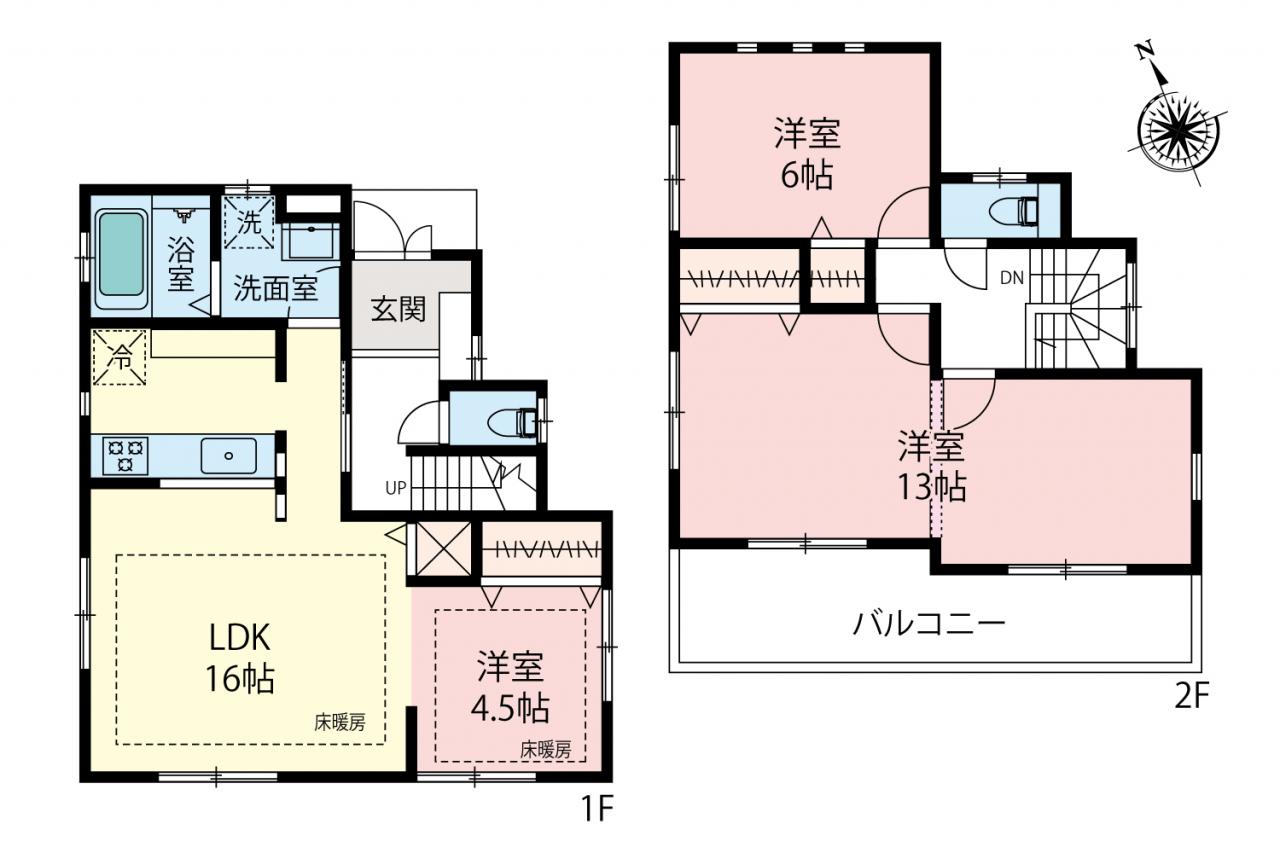 全室2面採光 床暖房 水回り集約 南西向きバルコニー 駐車場2台分 前面6m道路
