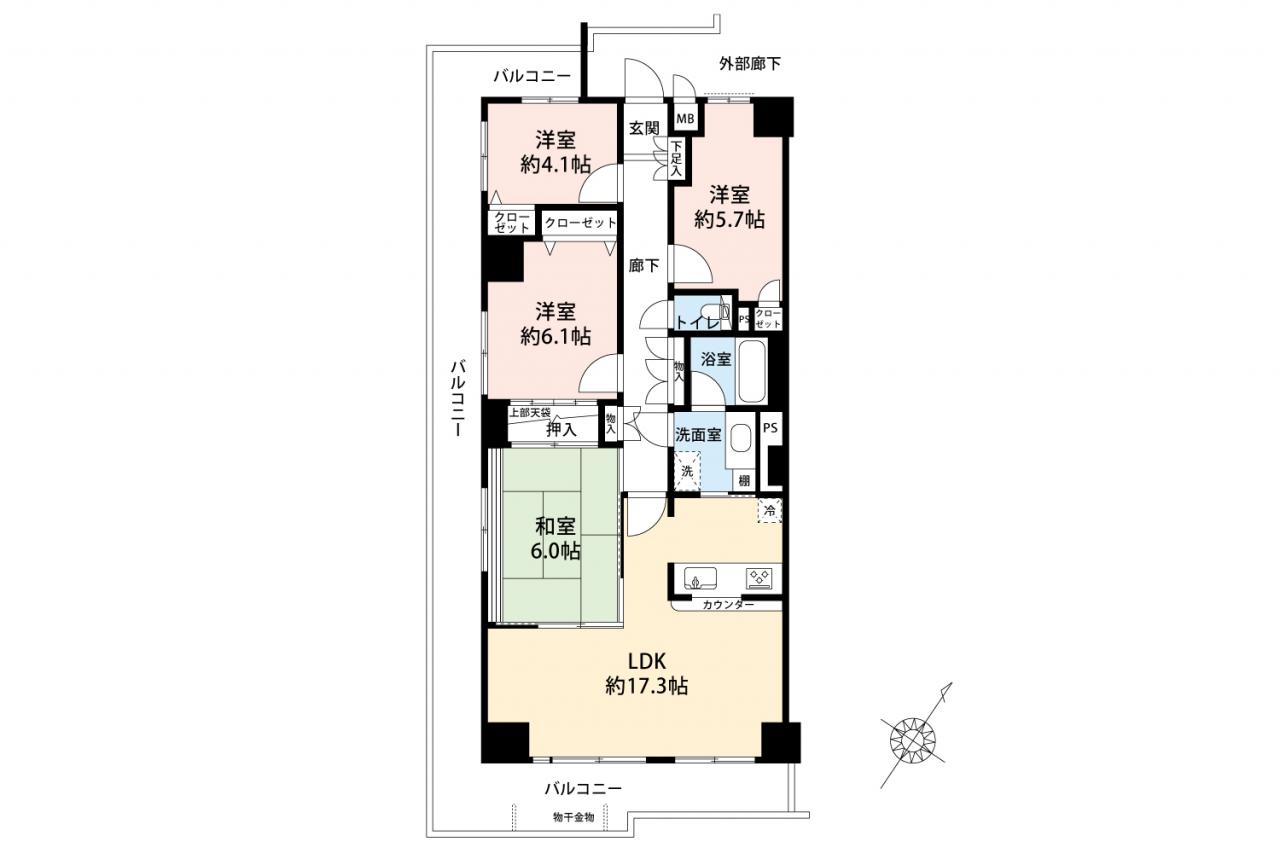 - ■南東x南西の二面に広がるバルコニーは陽当たり良好