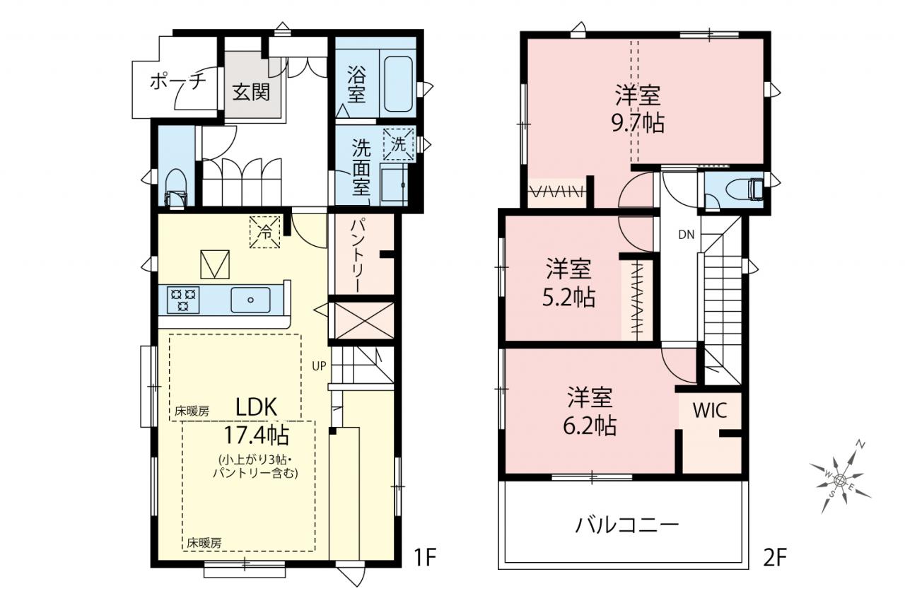 ウォークインクローゼット、パントリーなど随所に収納を設けた使いやすい間取りです。
